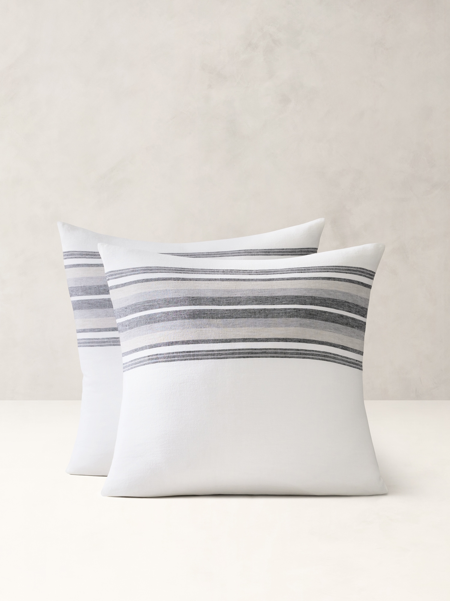 Loomed from premium linen, our shams offer a timeless design and refined hand. The textural material is expertly tailored and adorned with multicolored stripes against a white ground for a graphic feel. Pair with the coordinating duvet cover for a cohesive look.