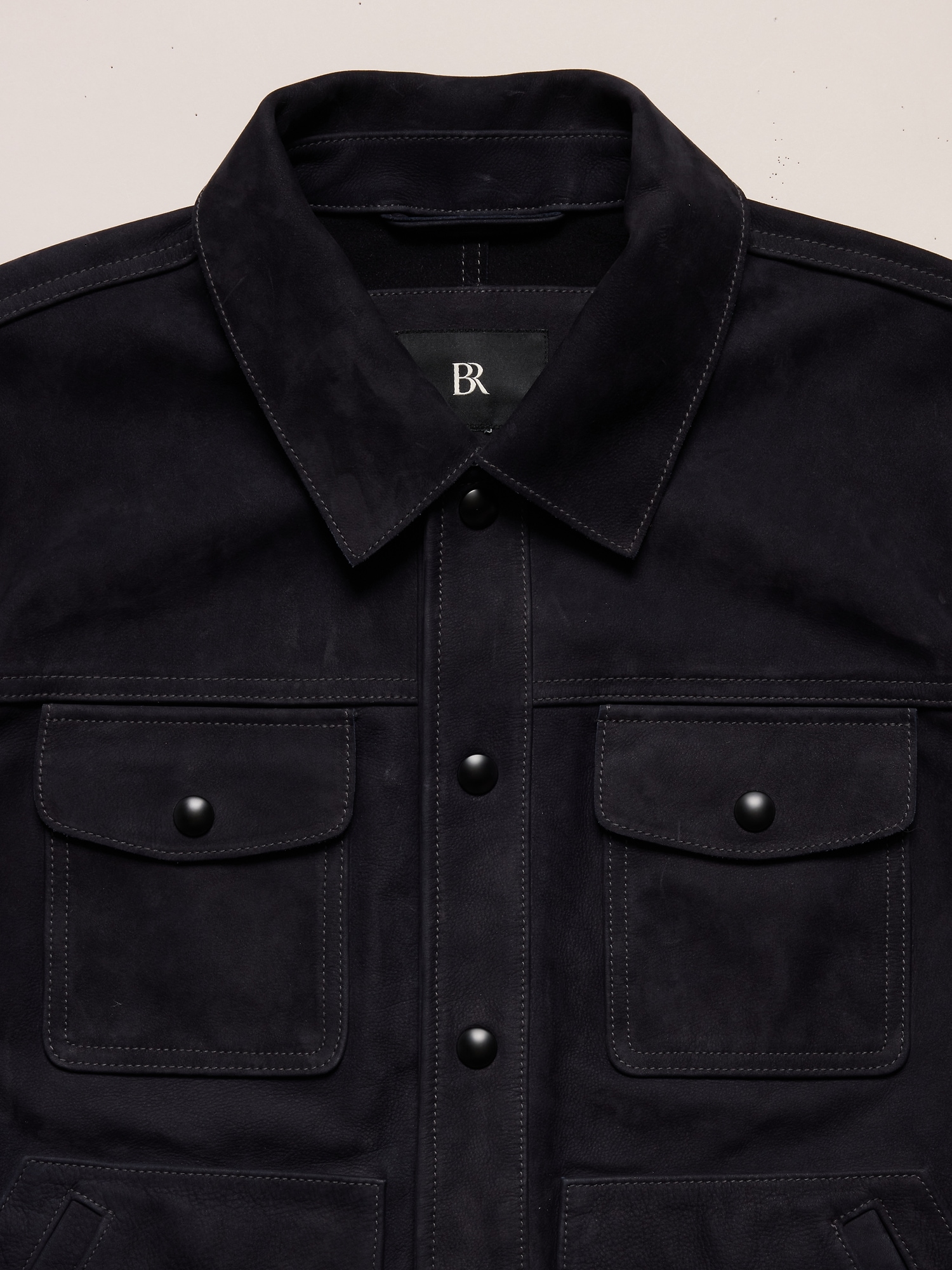 A luxurious twist on a utilitarian staple, this leather jacket borrows its silhouette from classic trucker jean jackets. We kept the pocketing, snap buttons, and top-stitch detailing of the original, and rendered it in premium nubuck leather, made in one of the world’s most renowned ateliers. Plus, since it’s nubuck, it will only get better with time, developing a rich and unique patina.