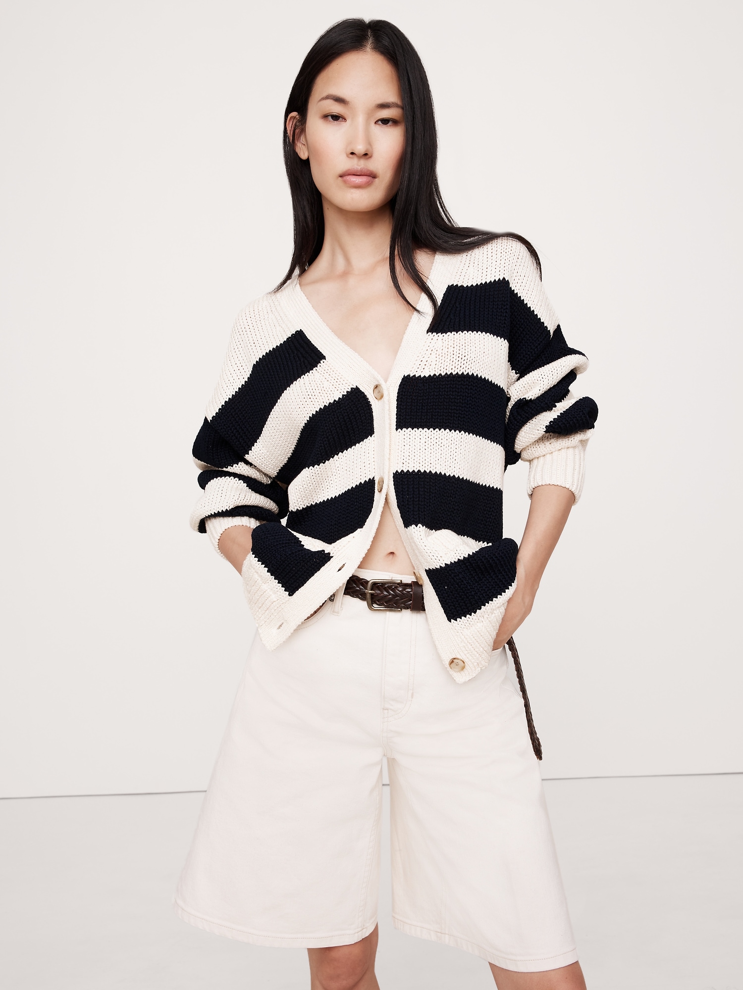 Our long and oversized take on the classic cardigan, crafted in beautiful and soft 100% cotton. Leave a few buttons undone and wear as a top or layer over a turtleneck when the weather turns cool.