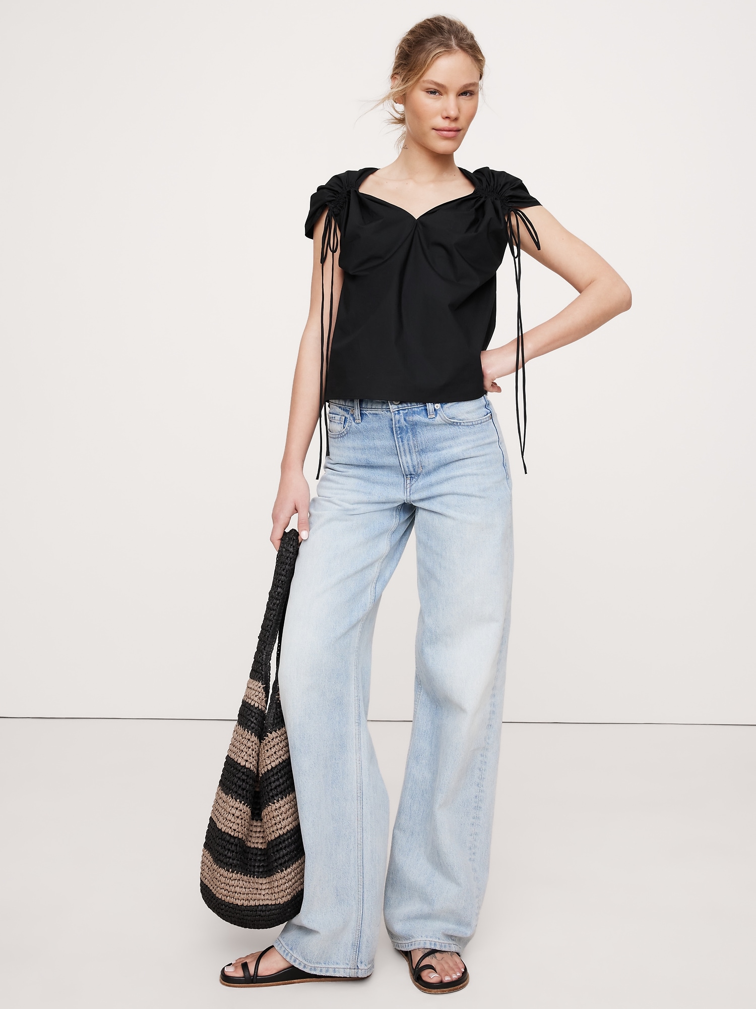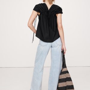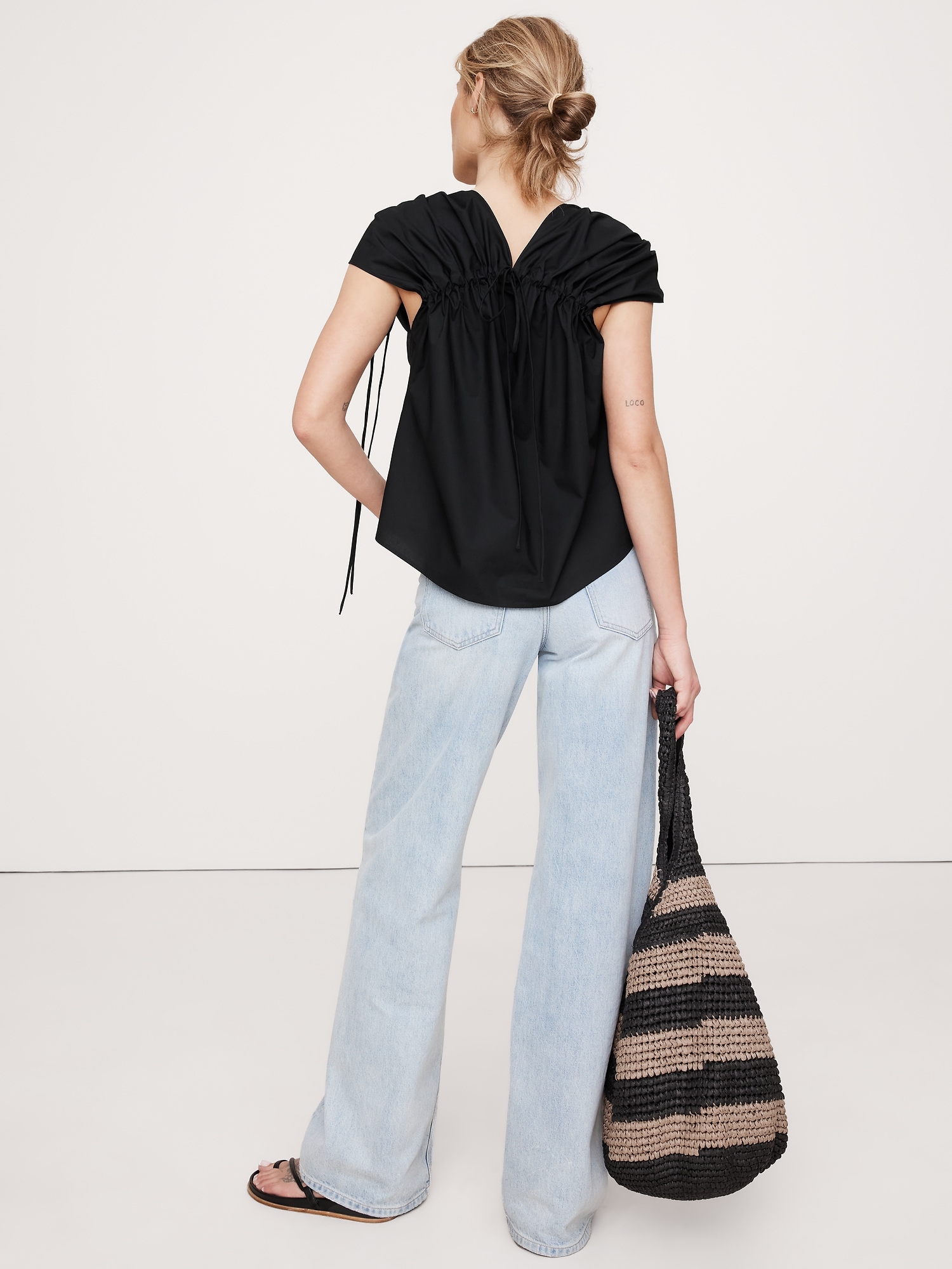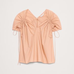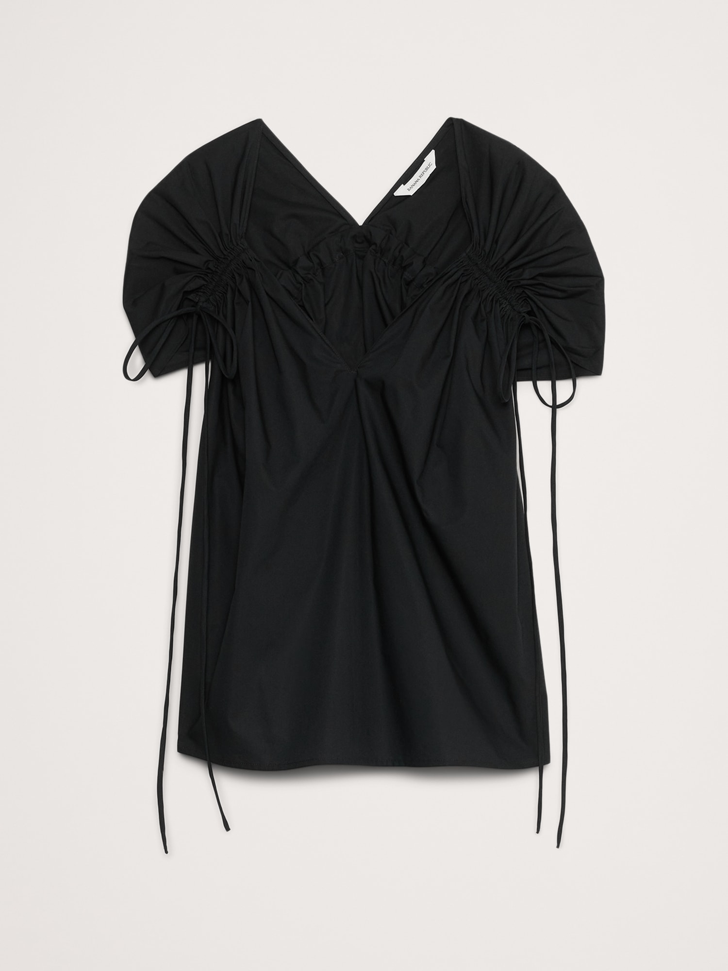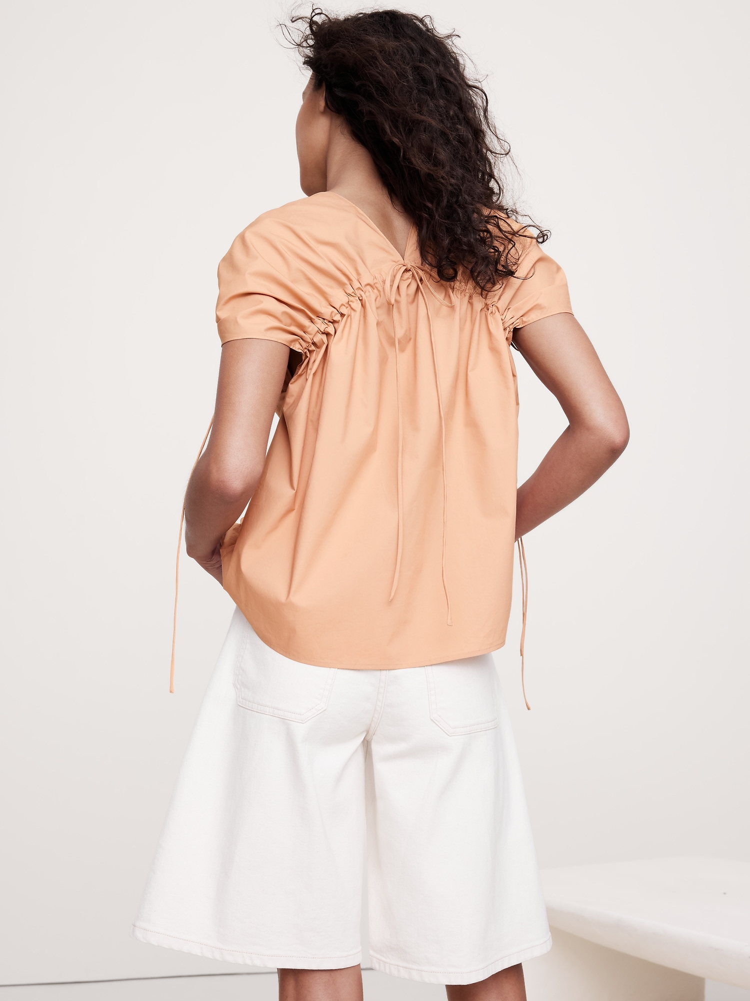 An easy cotton poplin top that’s ready for warm weather. We added drawstring accents at the shoulders and back to create a flowing, trapeze shape through the body.