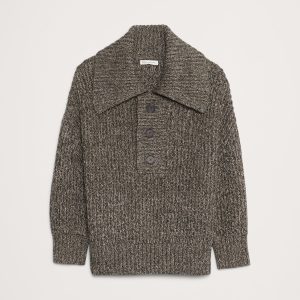 Everything about this sweater is the oversized fit, jumbo buttons, a dramatic sailor collar, and a beautiful, richly marled yarn spun from organic cotton.