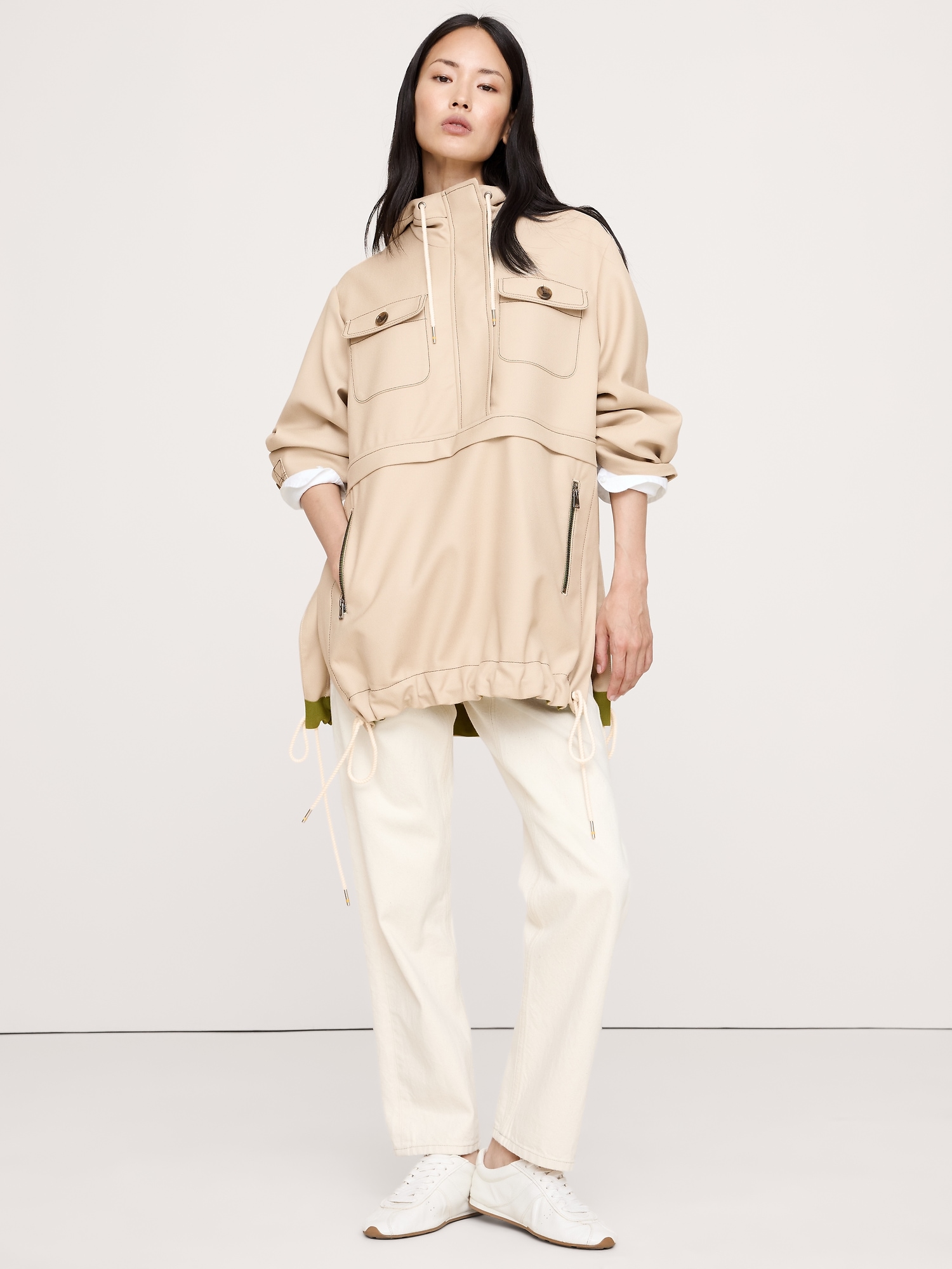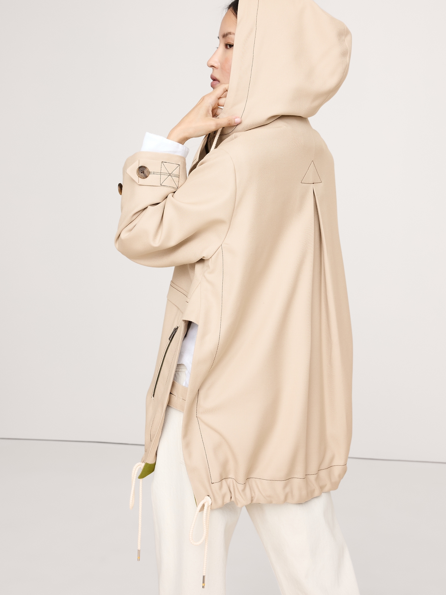 Drawstring hem.
