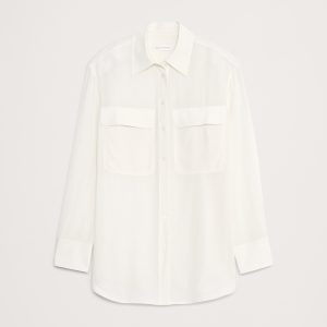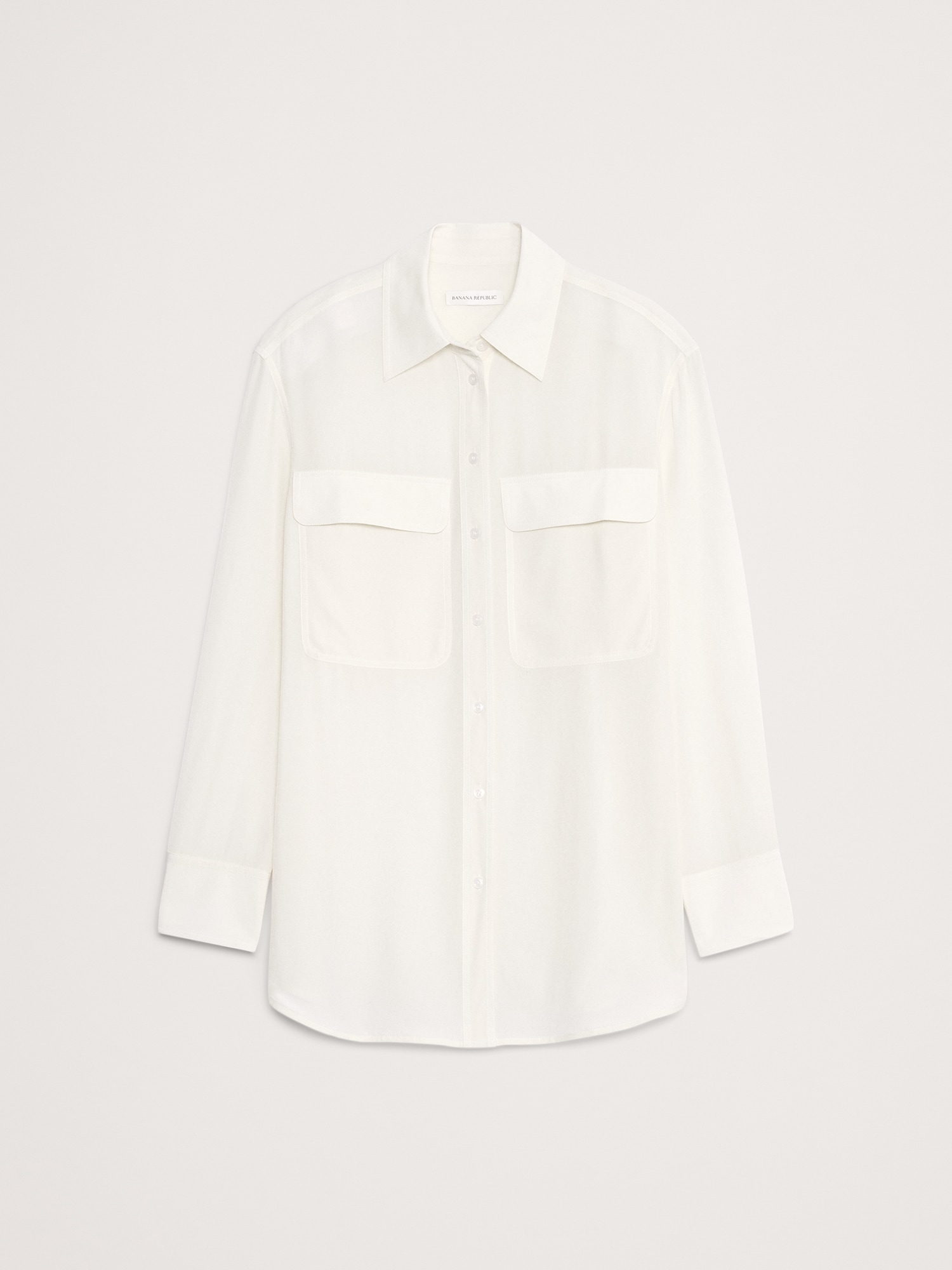 Cut from our signature silk de chinethis oversized shirt has chest pockets for a utility twist on the classic button-down shirt. Did we mention it’s also machine-washable?