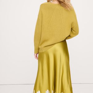 We used a paneled construction to put a spin on the classic, crew-neck sweater. Cut here in an oversized silhouette from a soft and warm Merino wool and cotton yarn.
