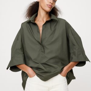 You love this oversized shirt so much, we had to bring it back. This popover shirt is crafted in our signature cotton poplin. We skipped the buttons this time, leaving the collar open for an at-ease effect. Style it with easy linen pants and sandals on warm days and pair with wide-leg jeans and boots on cooler days.