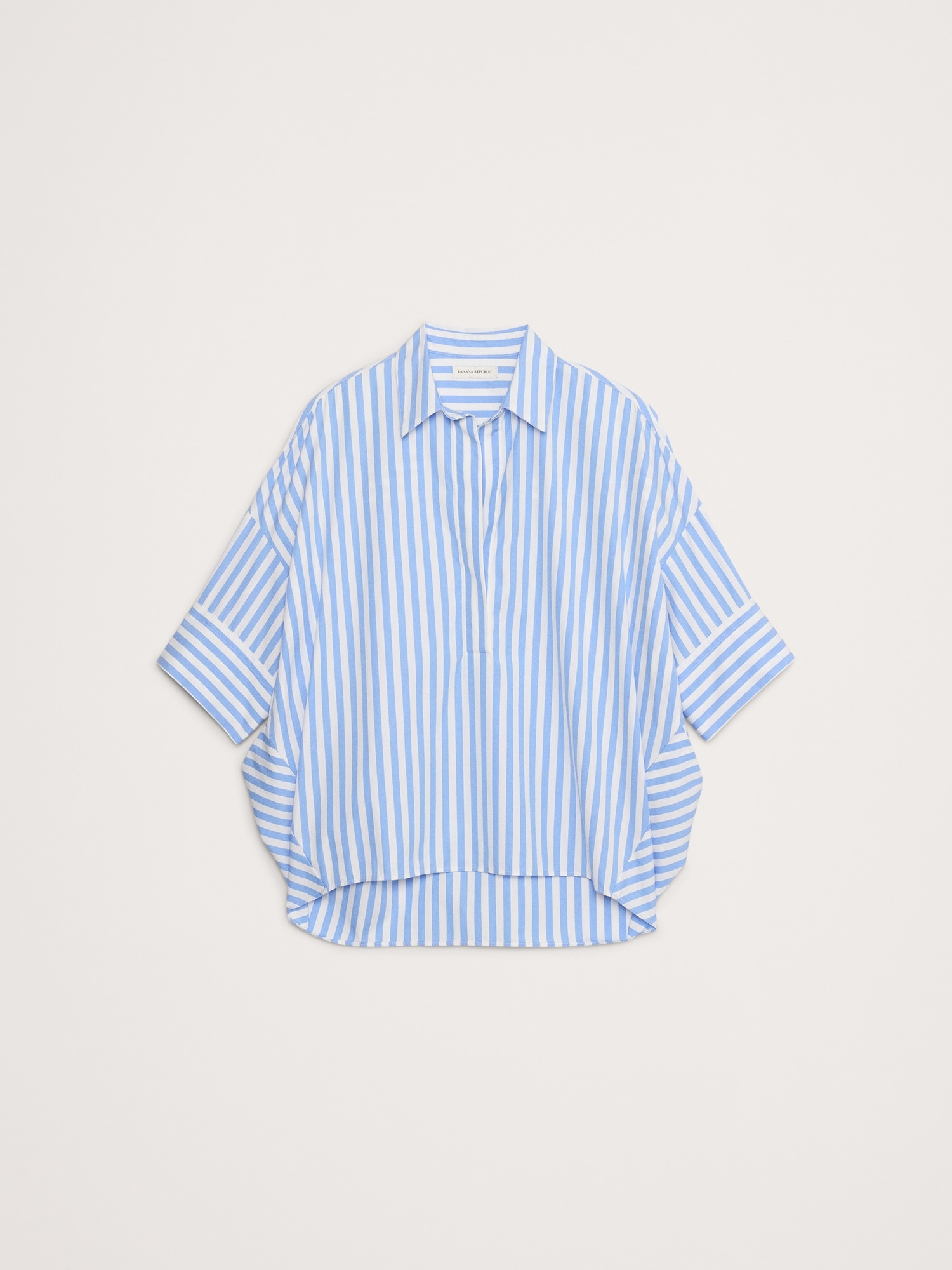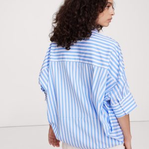 You love this oversized shirt so much, we had to bring it back. This popover shirt is crafted in our signature cotton poplin. We skipped the buttons this time, leaving the collar open for an at-ease effect. Style it with easy linen pants and sandals on warm days and pair with wide-leg jeans and boots on cooler days.