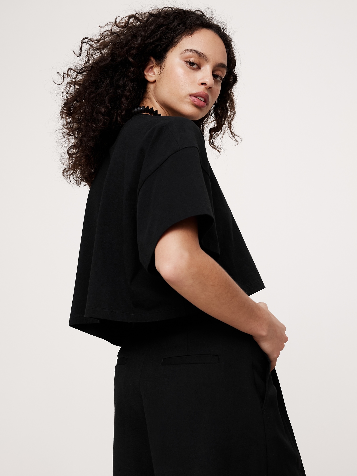 We kept the fit of this tee oversized and cropped as an invitation to play with proportions. Crafted in a midweight cotton we love for its vintage-like softness.