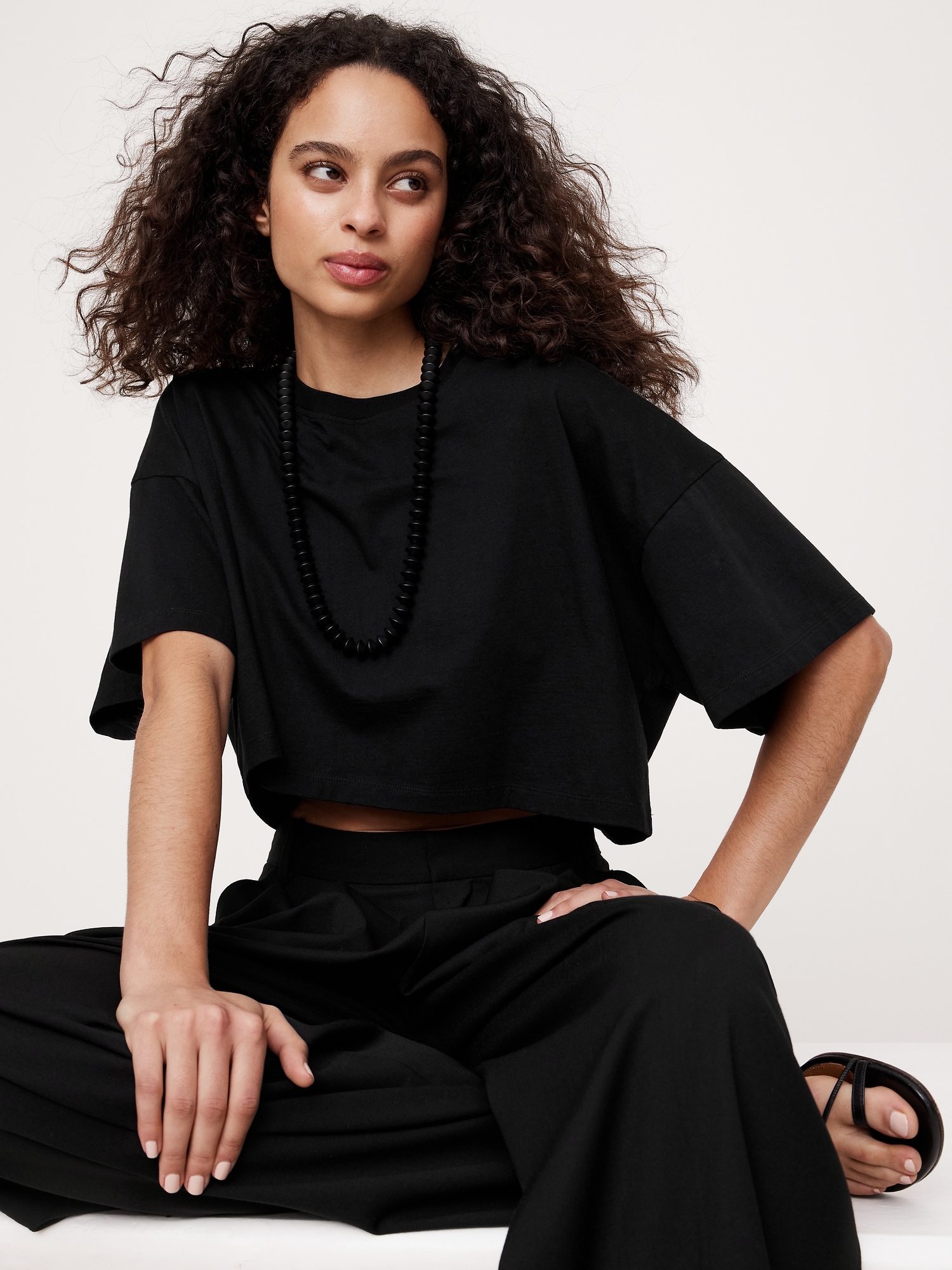 We kept the fit of this tee oversized and cropped as an invitation to play with proportions. Crafted in a midweight cotton we love for its vintage-like softness.