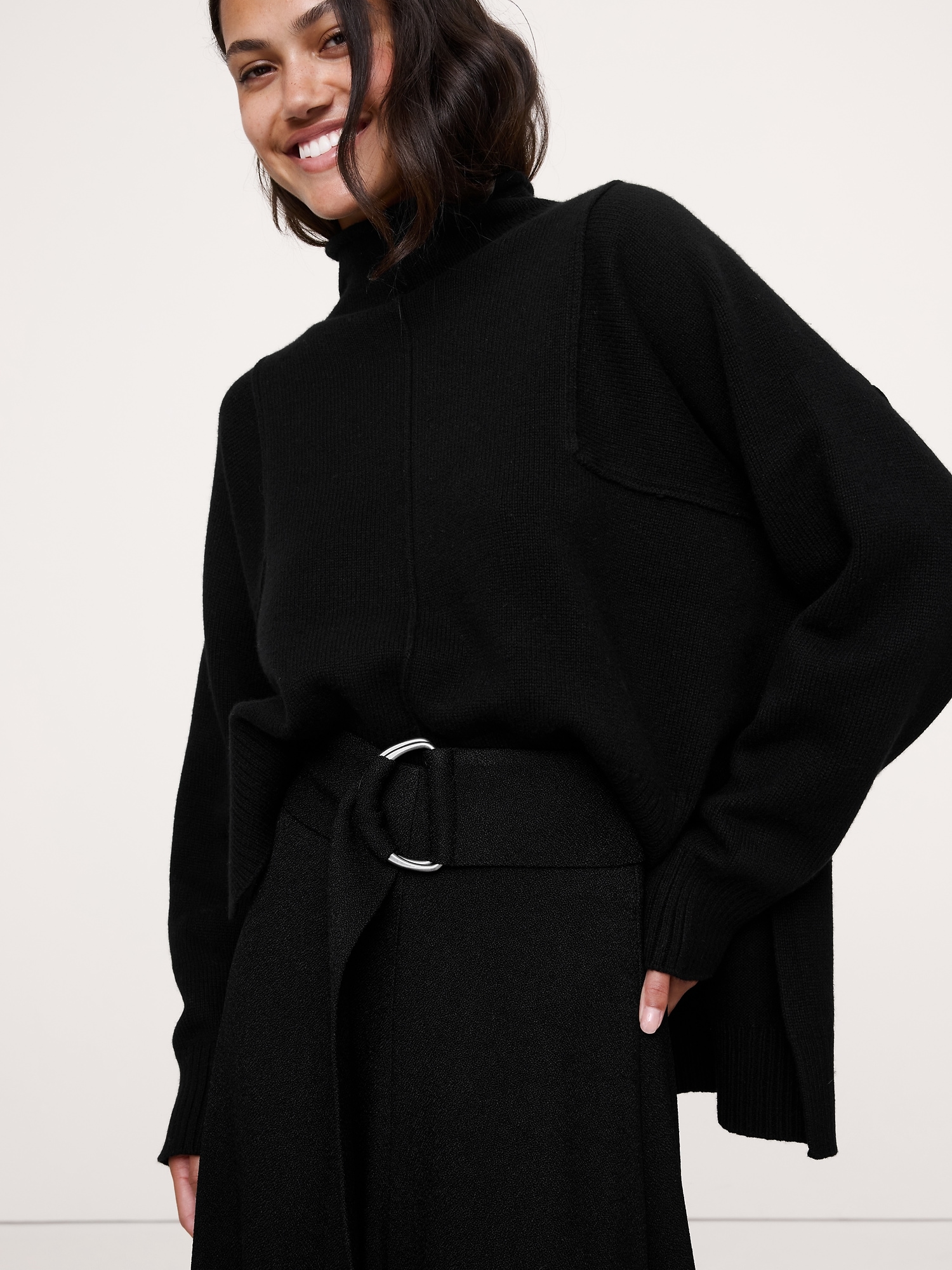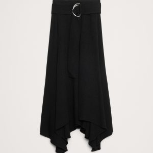 One of our favorite skirts to style this season. We love the handkerchief hem, adjustable slider belt, and the luxe, crepe fabric (it has a pebbled texture so it hangs beautifully).