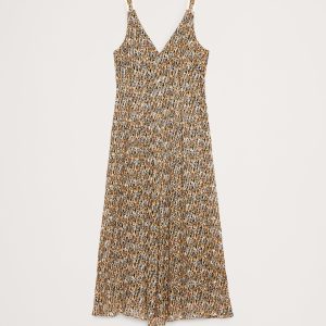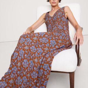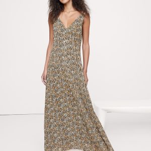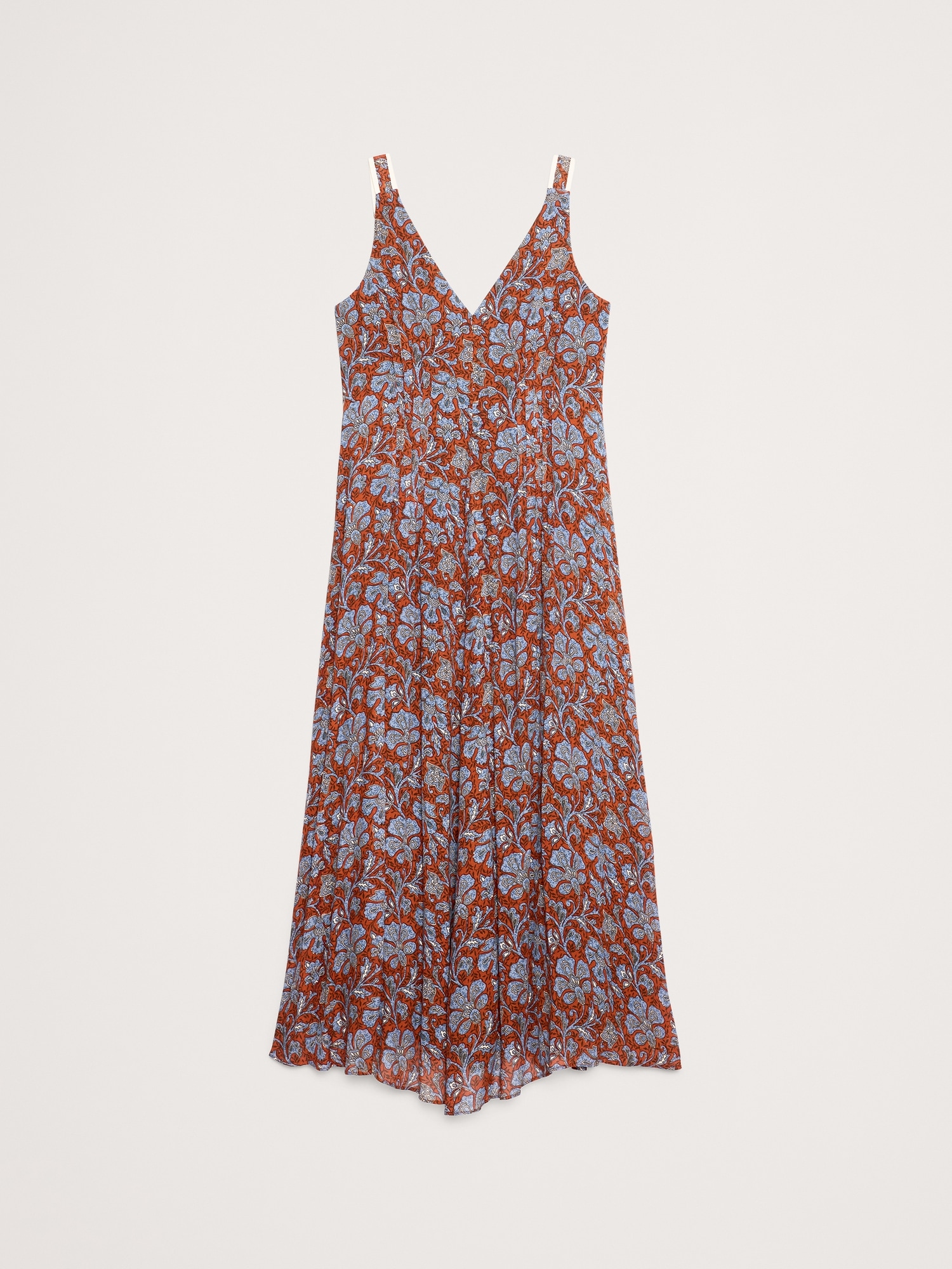 There’s so much to love about this maxi dress: the flowing silhouette, the low back, the adjustable slider straps, and the delicate pintucks. Cut in a matte, printed fabric that’s easily dressed up or down.