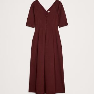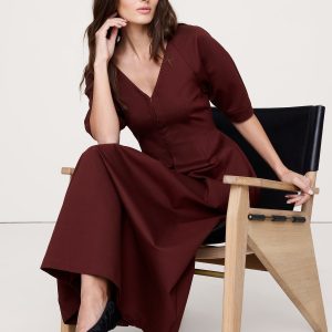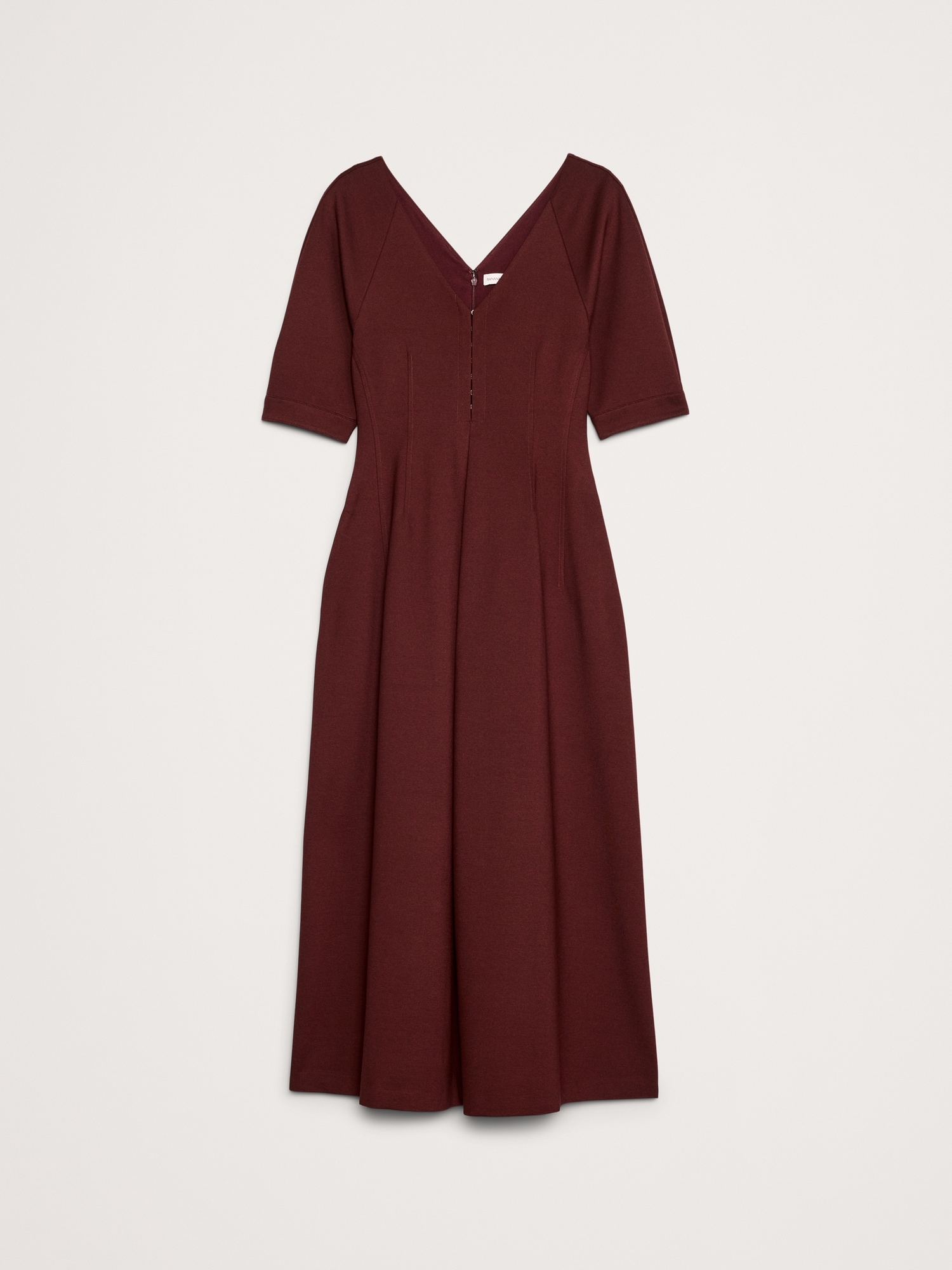 We designed this tailored maxi dress with darts at the waist and hook-and-eye closure at the front for a corset-inspired look. This one is made in one of our favorite ponte knits (so it’s super soft). Fit Flare: Fitted bust and waist with a flare skirt. V-neck with hook-and-eye closure. Zip at back. Side seam and back pockets. #827170