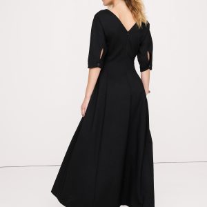 We designed this tailored maxi dress with darts at the waist and hook-and-eye closure at the front for a corset-inspired look. This one is made in one of our favorite ponte knits (so it’s super soft).