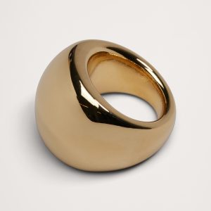 Our statement-scale dome ring is cast in bronze with a pleasing level of heft. The bronze is plated in 12K gold or sterling silver and polished to a high shine.