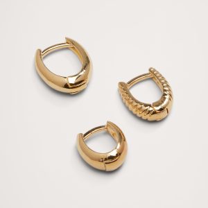 Ravena Oval Huggie Hoop Earrings Set Of 3 by Aureus + Argent