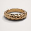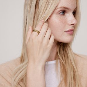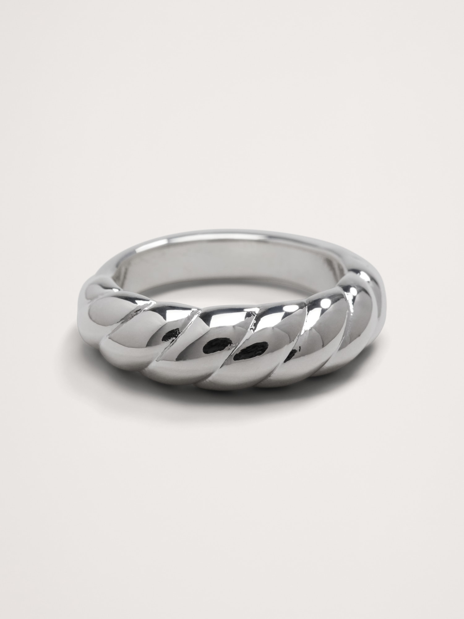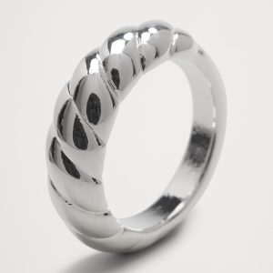 Our classic twisted scallop ring is cast with a delicate slender profile in nicely weighted bronze. Perfect for pairing with other rings. The bronze is plated in 12K gold or sterling silver and polished to a high shine.