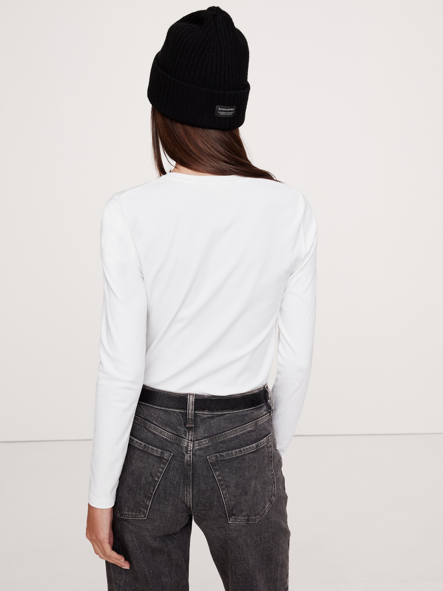 Striking a balance between a casual necessity and sophisticated luxury, this refined crew-neck t-shirt pairs with anything, including the transitioning seasons. Crafted with a soft blend of sumptuous cotton with a bit of stretch.