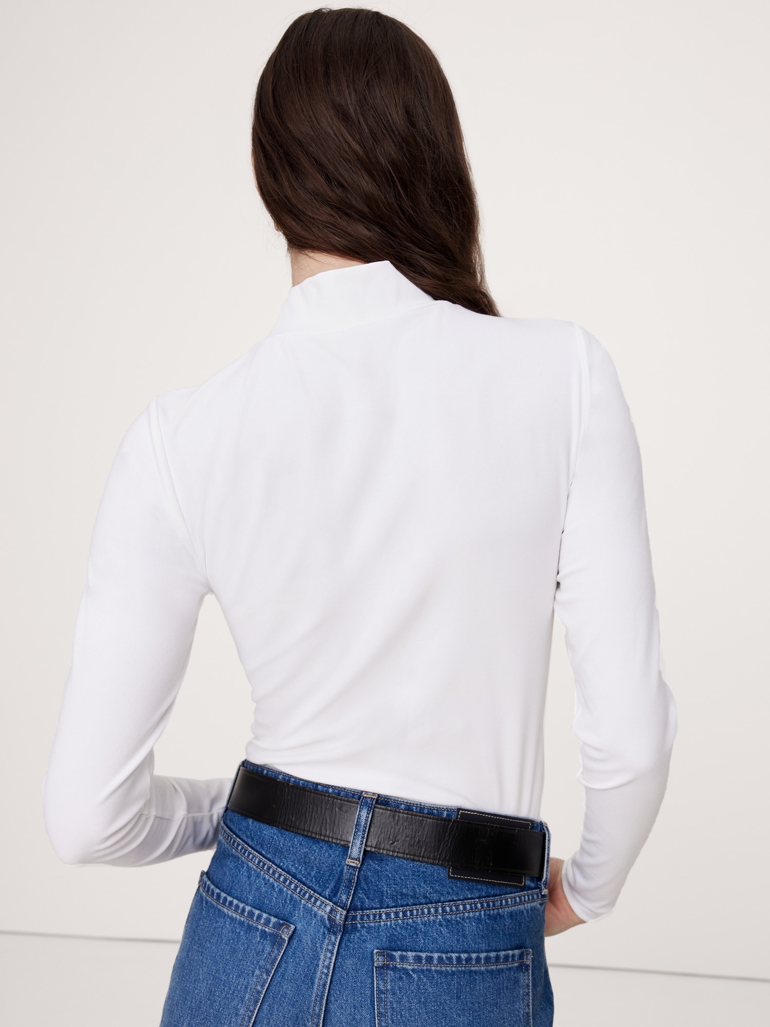 This long-sleeve mock-neck t-shirt is crafted from our soft and sleek Refined jersey, beloved for its smooth feel and high-stretch fabrication.