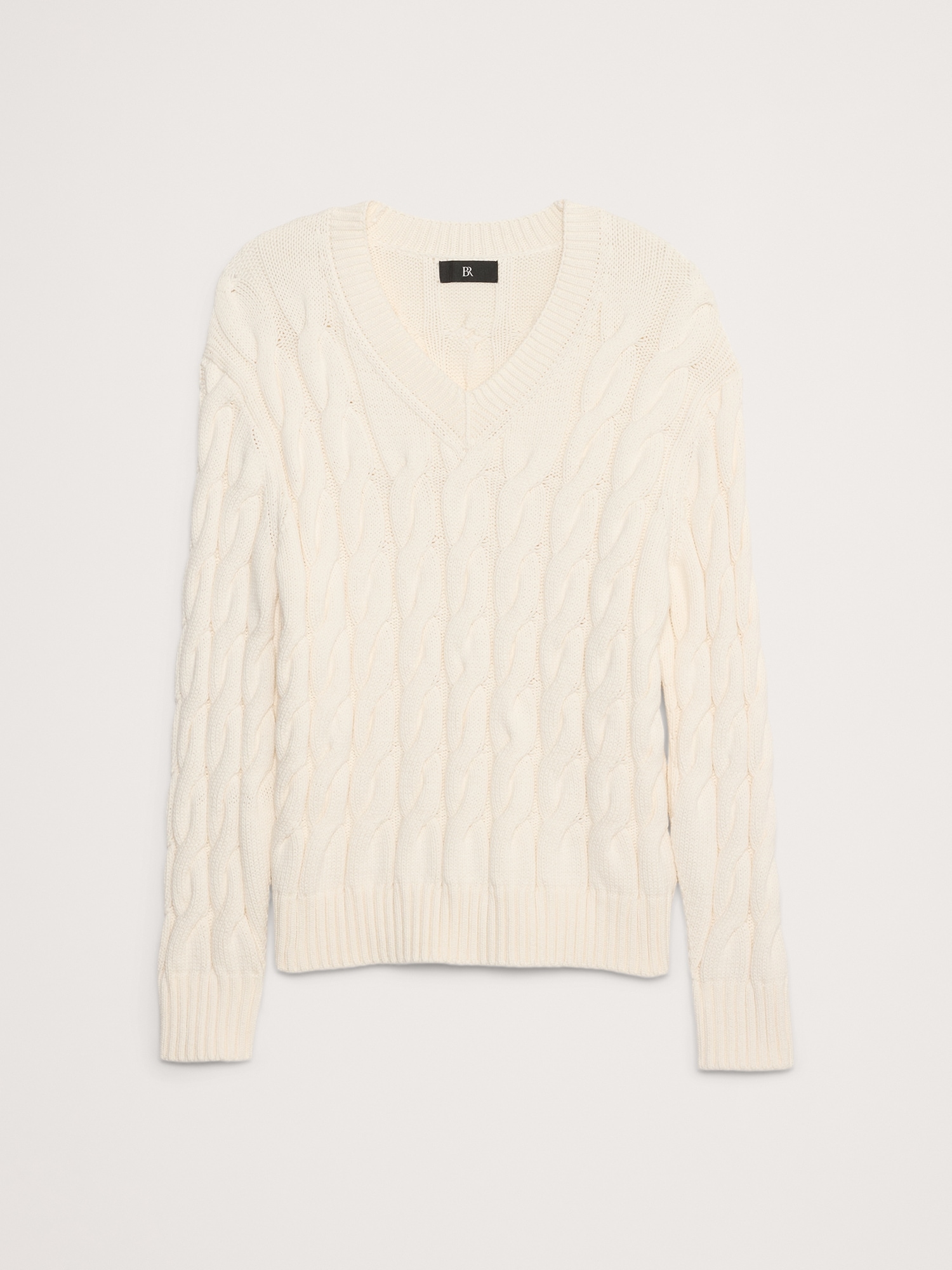 Relaxed Cable-Knit Cotton-Blend V-Neck Sweater