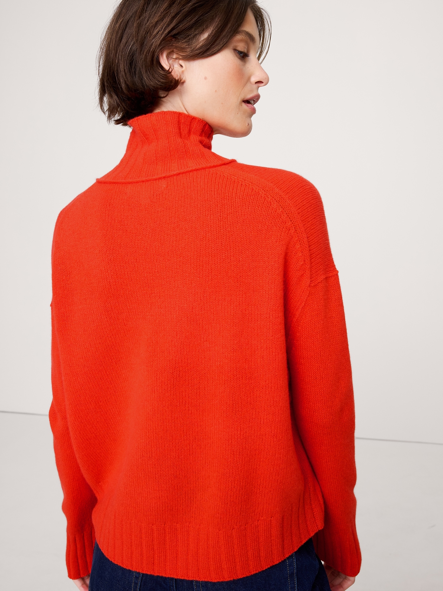 The ideal Big Comfy Cashmere Sweater, we cut this one from our signature cashmere—beloved for its soft texture and midweight warmth. We kept the fit relaxed and added a funnel-neck—similar to a turtleneck, but without the foldover so it’s sleek and easy to layer.