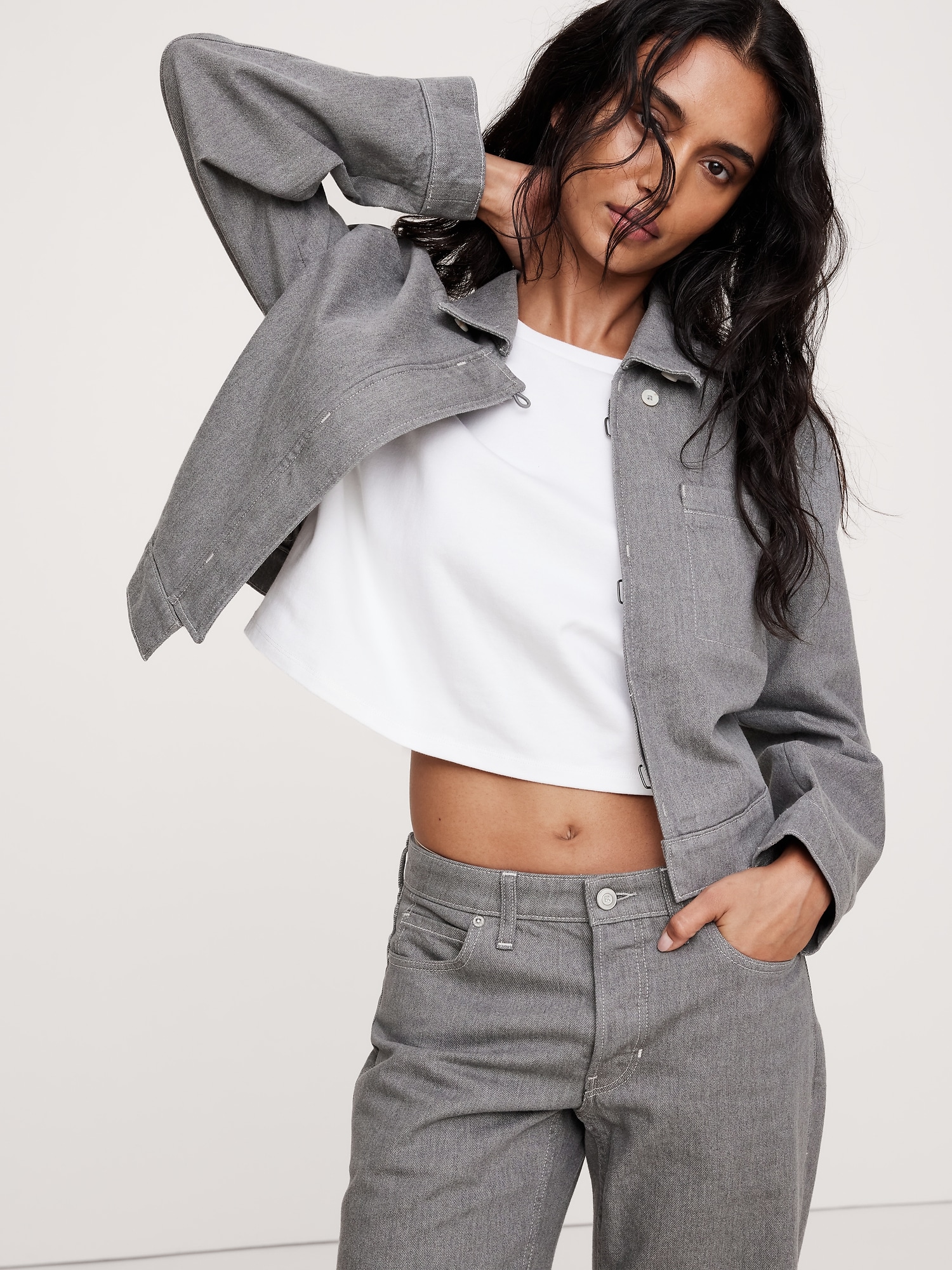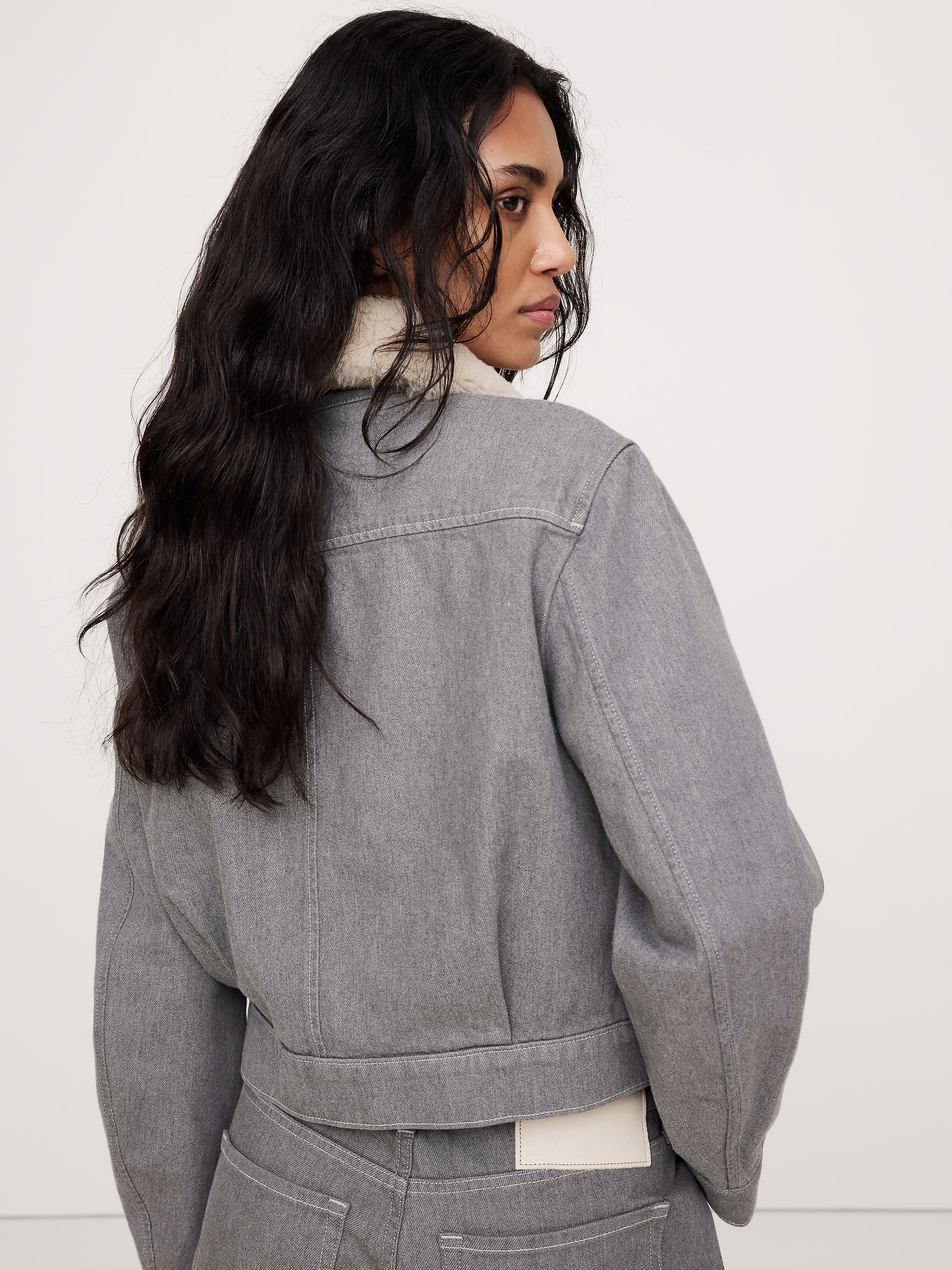 We love the look of old-school chore coats, which is what inspired us here. We updated the look with a removable faux-fur collar and a cropped length for easy layering.