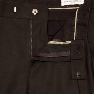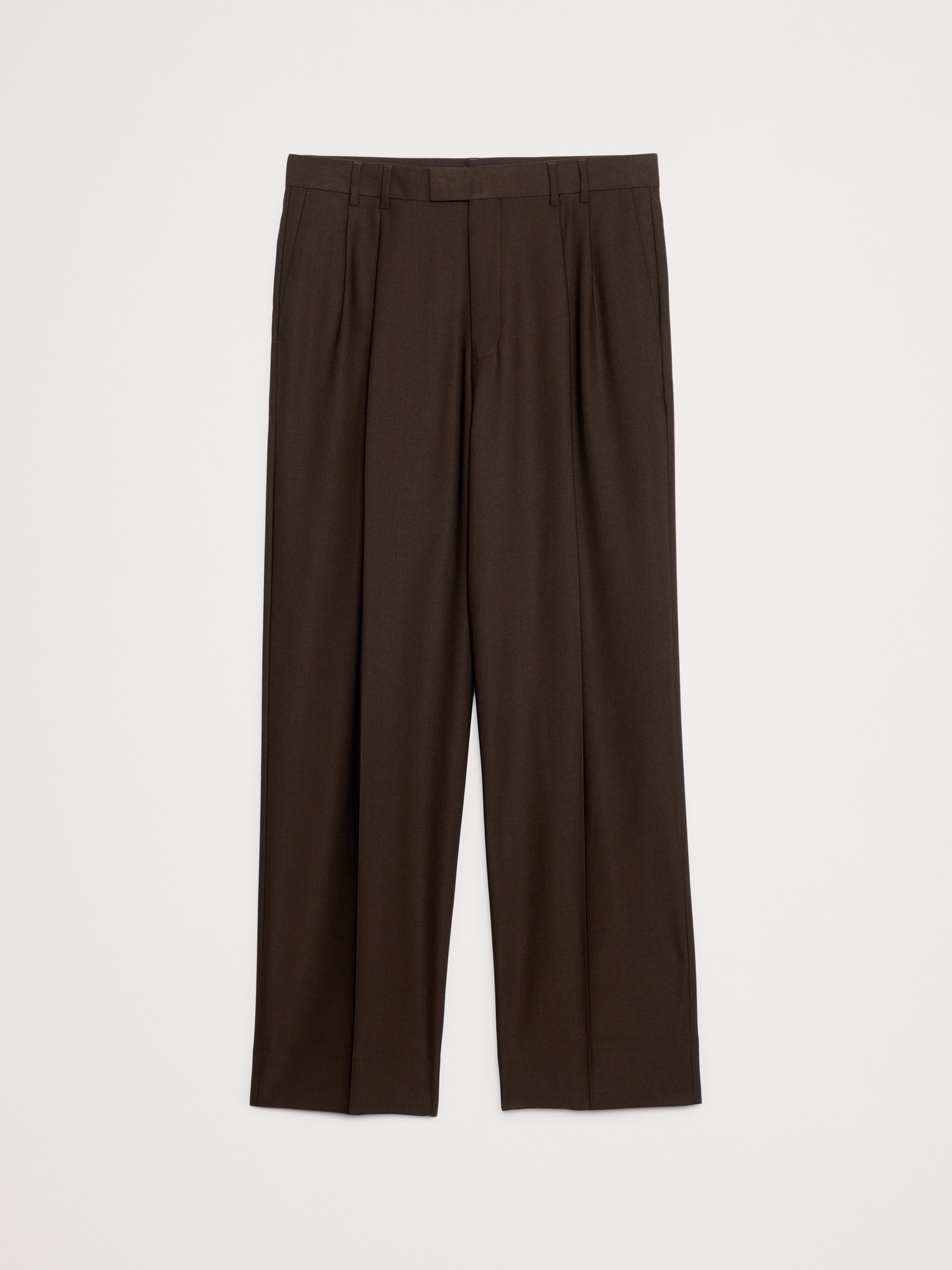 Pleated front and trouser crease.