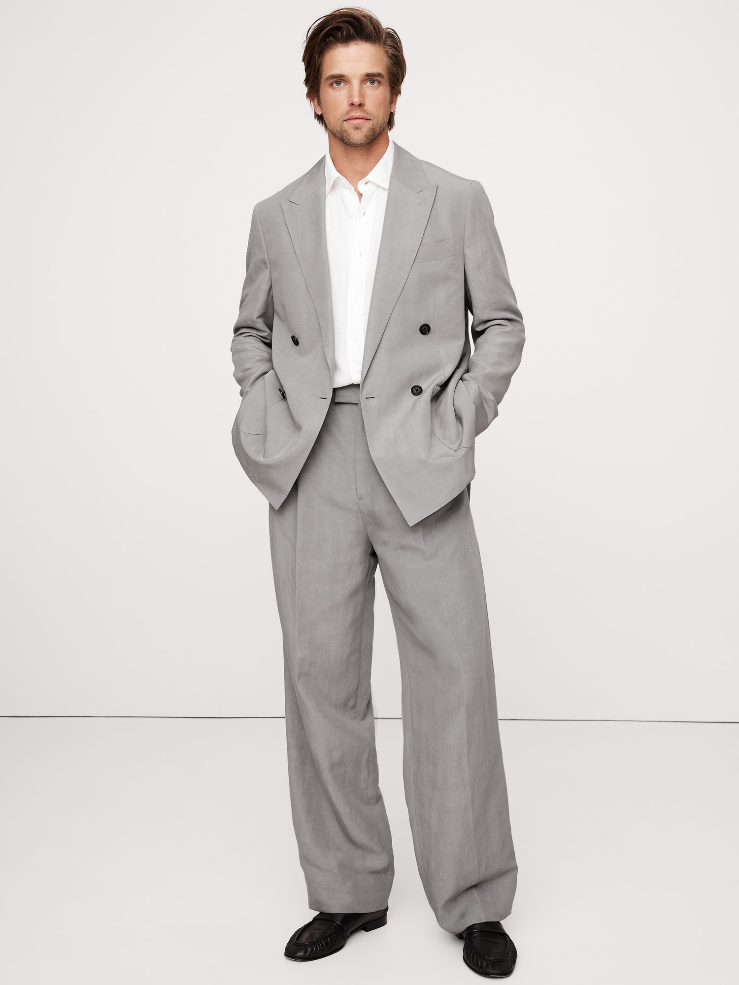 A very cool suit. We kept the fit relaxed for this double-breasted suit jacket, crafting it in a silky blend of TENCEL™ lyocell and luxurious linen—an ideal choice in heat and humidity.