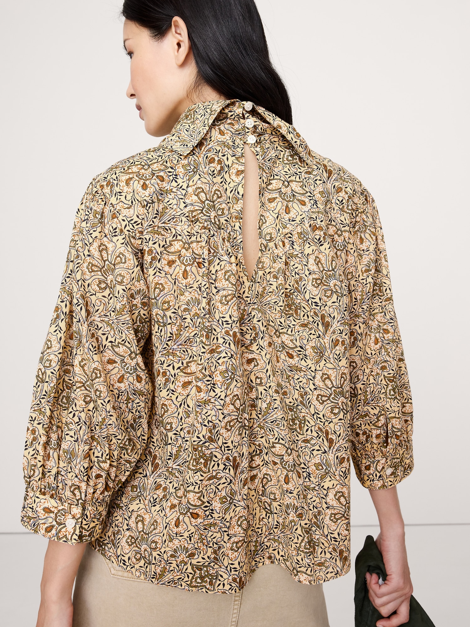 Deconstructed, reconstructed. We flipped the classic Western shirt back-to-front to give it a mock-neck silhouette. Here, in soft cotton lawn. Relaxed fit: Relaxed fit through shoulders, chest and waist. Mock neck with button placket at back. Western yoke detailing. Straight hem. Unlined. #826102