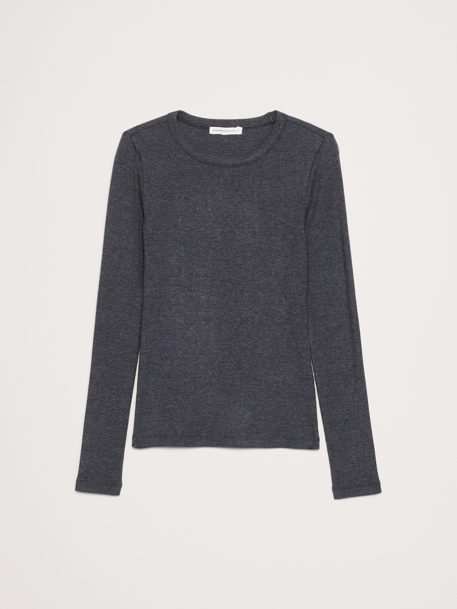 This ribbed t-shirt is cut with a straight hem, crafted from a cotton and modal blend, giving it an even-softer handfeel.