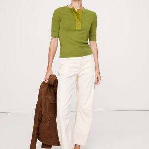 Meet the henley we’ll be reaching for all year. We love the soft, ribbed fabric, the cotton poplin trim, and the body-conscious fit.
