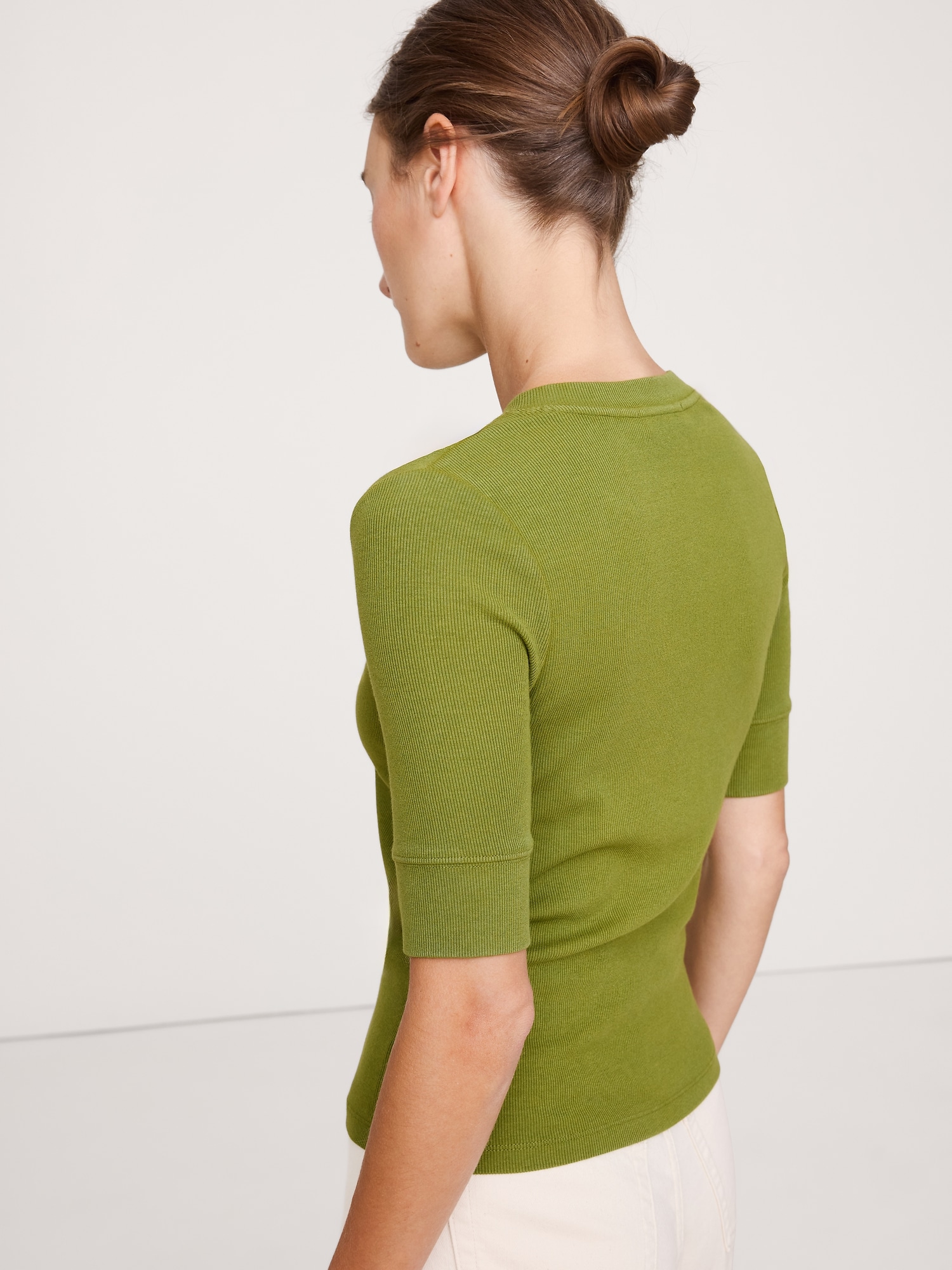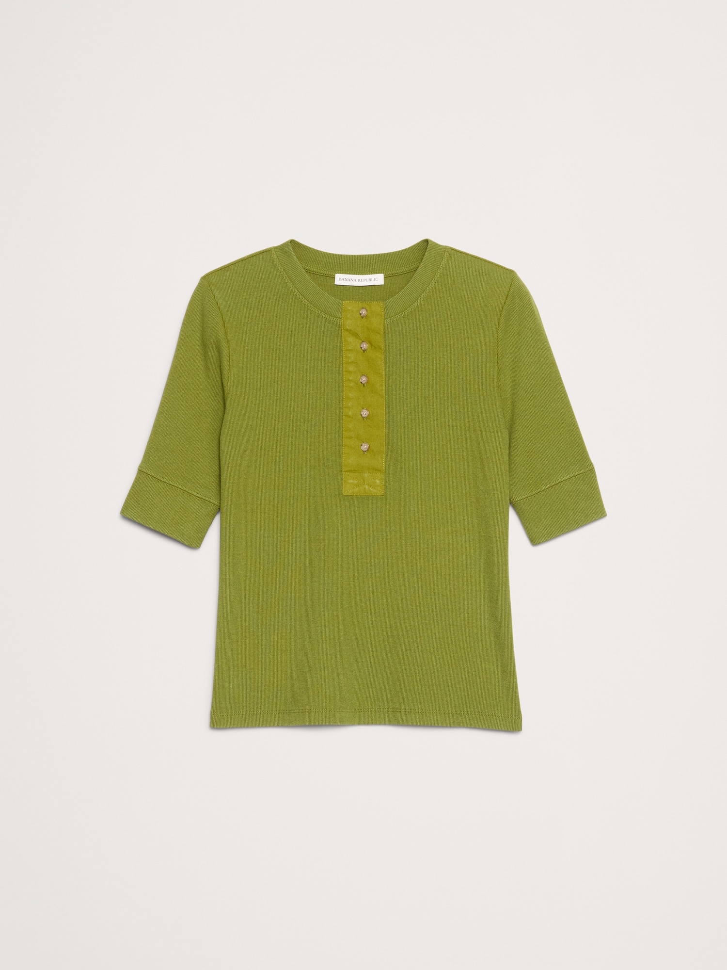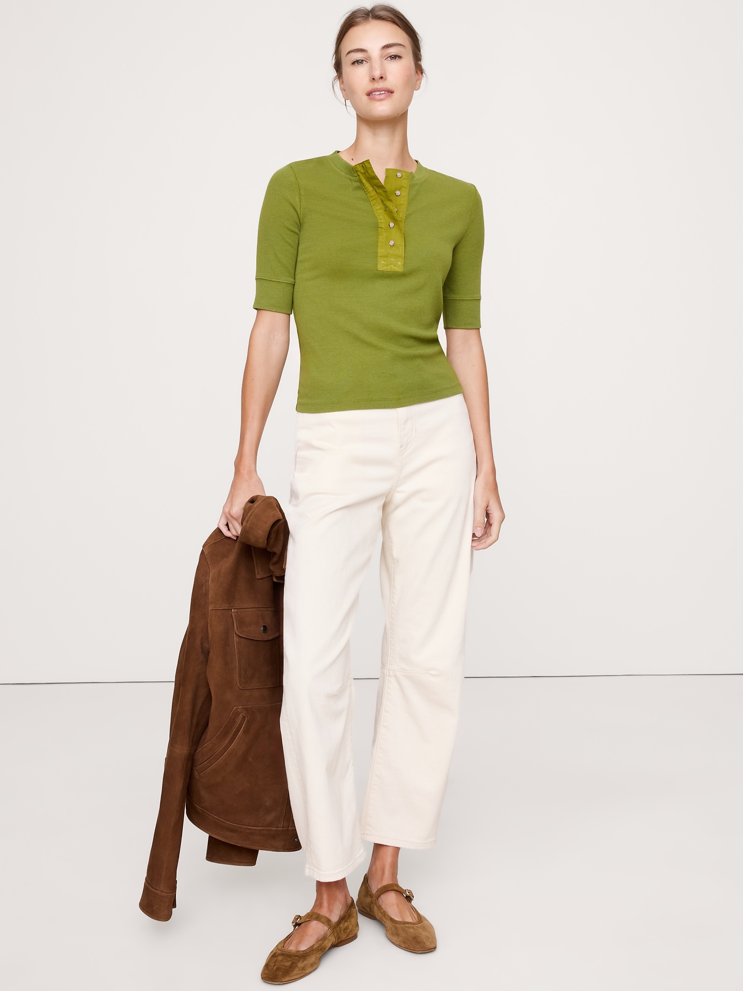 Meet the henley we’ll be reaching for all year. We love the soft, ribbed fabric, the cotton poplin trim, and the body-conscious fit.