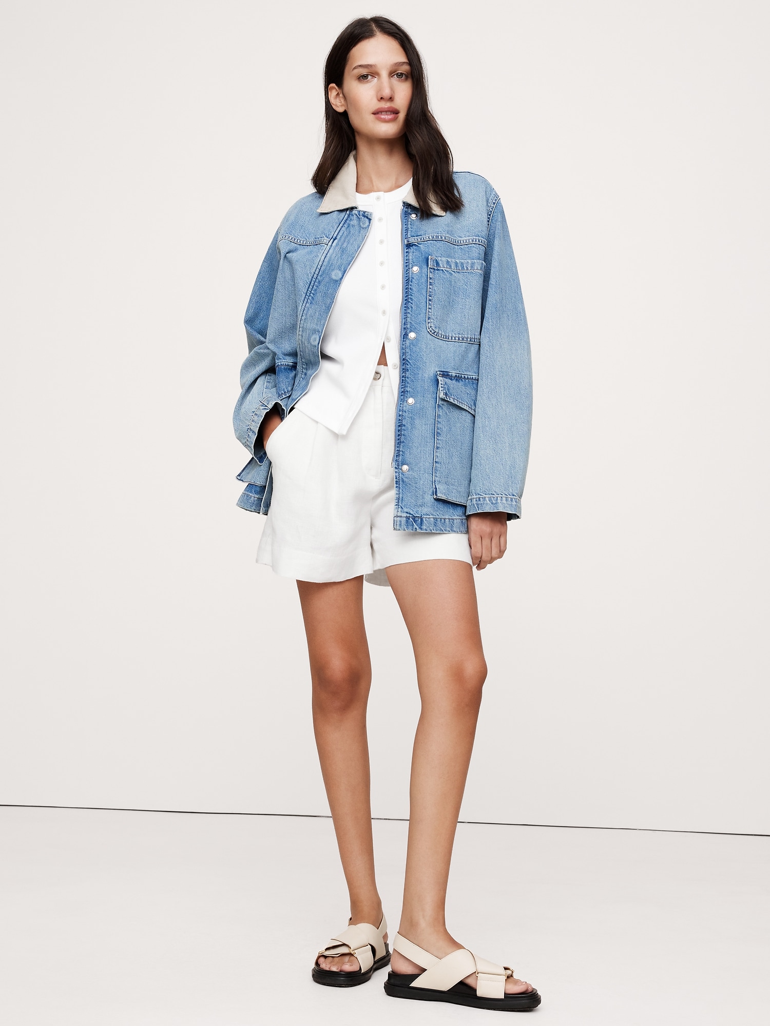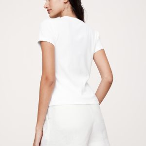 A classic crew-neck tee meets cardigan styling, we kept the fit slim for this Ribbed Top, adding a row of beautiful horn buttons down the front so you can button as high or low as you like.