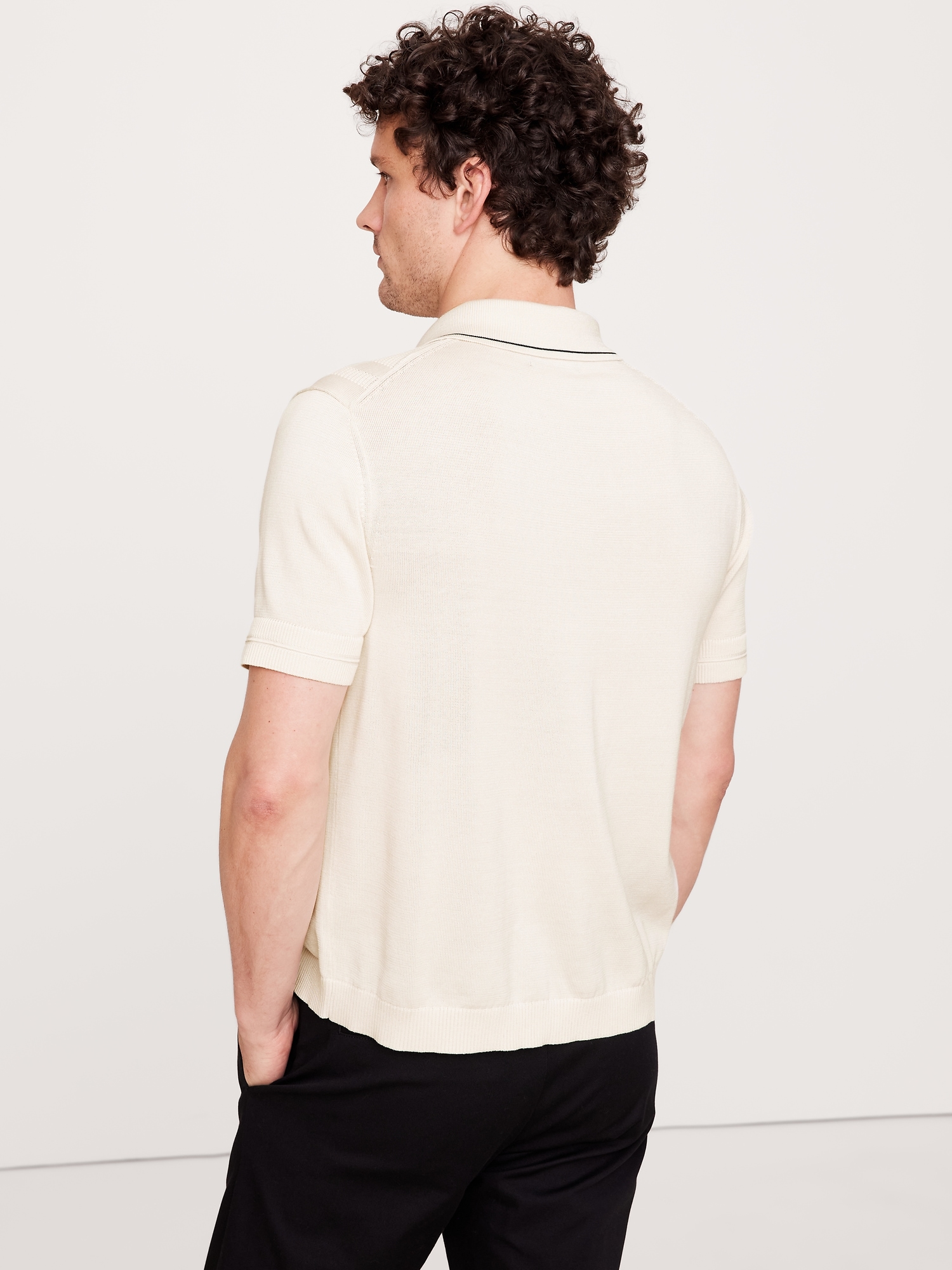 Resort shirt meets sweater polo. We combined the best of both using a variety of ribbed stitches in our 100% certified-organic yarn (so it’s ultra soft).