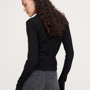 Living your prima ballerina dreams. This cute wrap top is cut from our stretchy ribbed jersey, which mixes cotton and modal for an even-softer handfeel. Fitted: Slim. Sits close to the body. Low v-neck with wrap tie. Straight hem. #825842