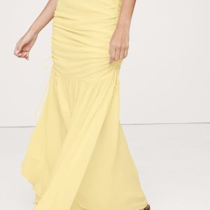 Go ahead, RSVP yes. A fresh take on the season’s Y2K revival styles, this maxi skirt is cut from a viscose crepe that feels light-as-chiffon with a subtle stretch. Ruched sides enhance the drop waist and figure-hugging silhouette.