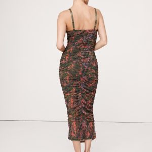 Hard to forget. This slinky midi dress has a corset-inspired bodice and allover ruching, cut in our stretch-mesh for a delightful, next-to-skin feel. Sheath Fit: Sits close to the body with a straight skirt. Sweetheart neckline. Invisible zip at back. Lined to mini-length. #817714
