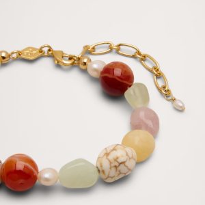 Introducing the Seaside Bracelet, filled with playful details, precious stones, and freshwater pearls. The subtle caramel and cream colors give it an understated elegance.