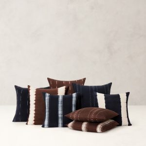 Intriguing patterns rendered in a traditional West African tie-dye method celebrate the beauty of imperfection. Meticulously handmade by Tensira, a family-owned company based in Guinea, West Africa. Tensira contributes to the preservation of heritage artisanal techniques. Working with the finest cotton, Tensira artisans are skilled in hand-dyeing, weaving and sewing. The BR Home range has been made in the traditional West African tie-dye method by which patterns are sewn into the fabric with a needle and thread before coloring. A single design can contain up to 3500 stitches, creating intricate patterns in the dye vat which will only be revealed once the piece has been dried and the thread cut loose and unraveled. Small variations are celebrated as the hallmark of authentic tie-dye craftsmanship Made in Guinea. Pillow inserts are sold separately are sized slightly larger than our pillow covers to create a fuller effect. #826668
