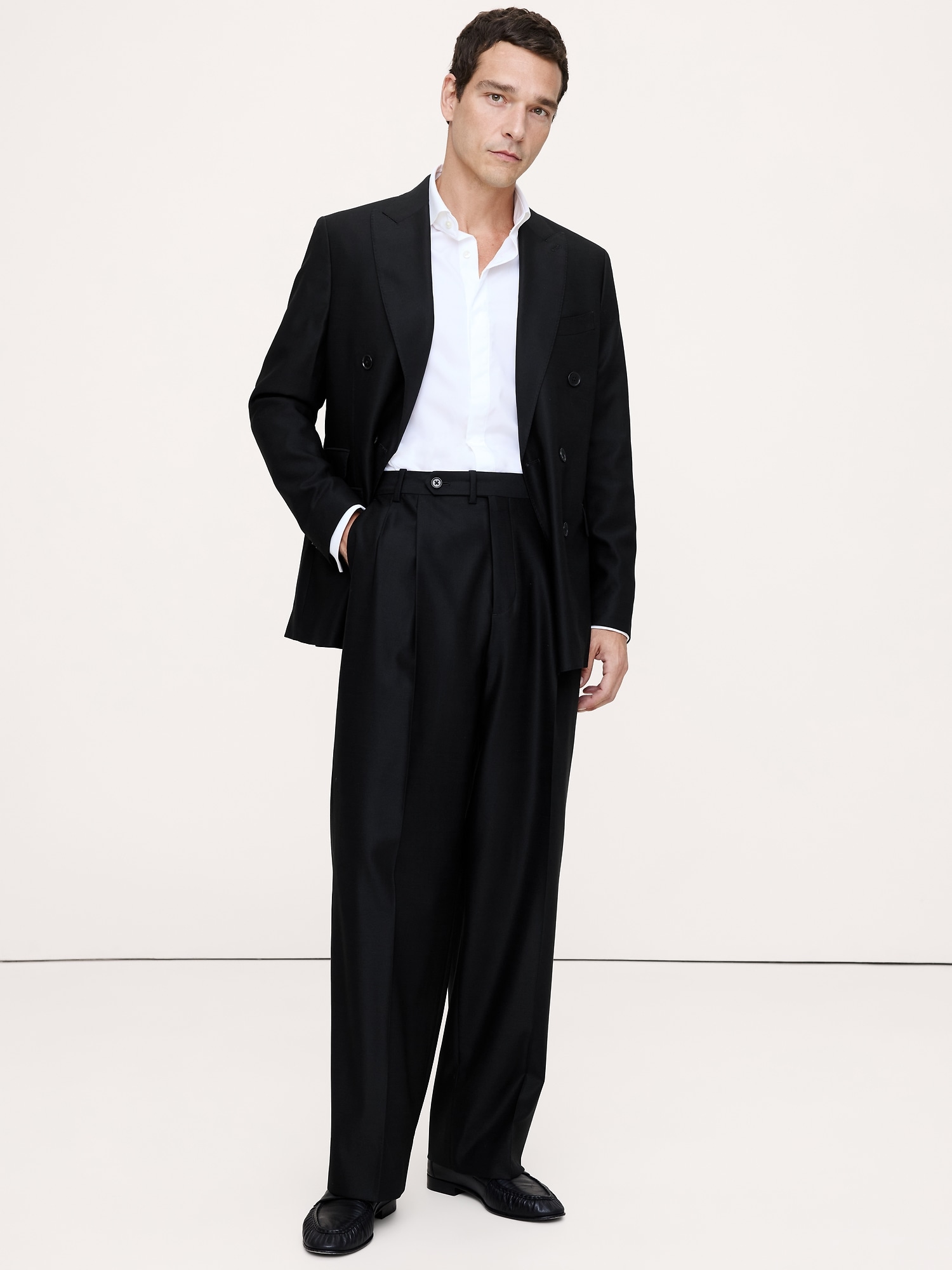 Signature Italian Hopsack Double-Breasted Suit Jacket
