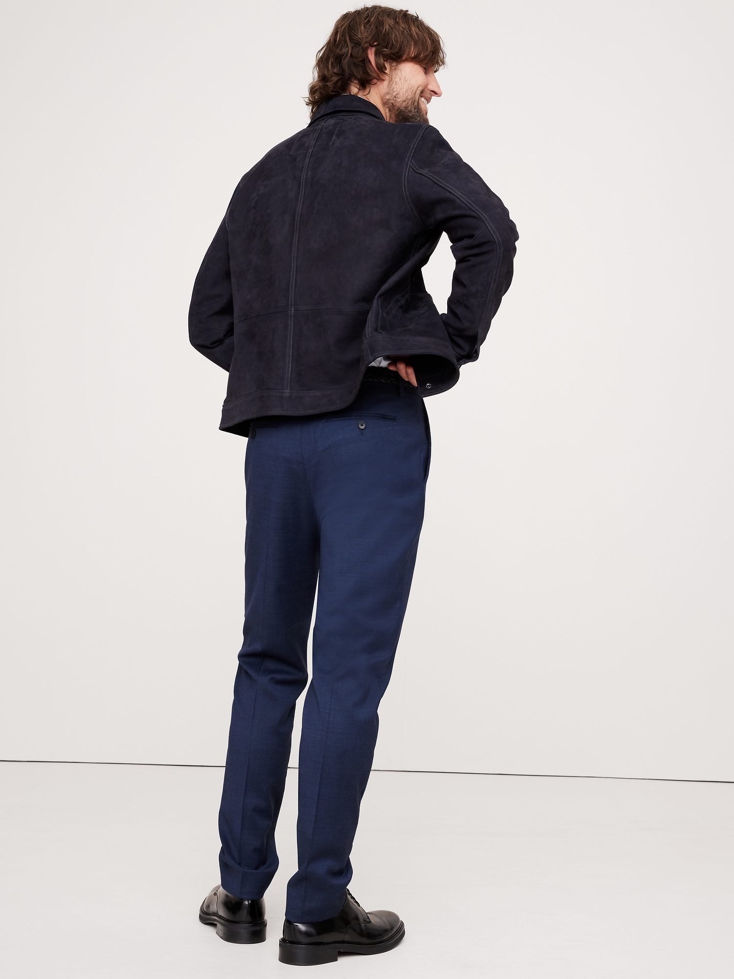 Legendary workwear. Three years of research went into perfecting the fit for these tapered pants, crafted here in a luxurious wool fabric in a nailhead texture from Italy’s renowned Reda Mill. With enhanced stretch for movement and comfort, you’ll reach for them over and over for seasons to come. Breathable, StretchSLIM FIT: Undeniably modern, our designers spent 3 years working to refine the fit of this cut, with a tapered fit through the leg, and distinctive break at the hem.