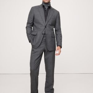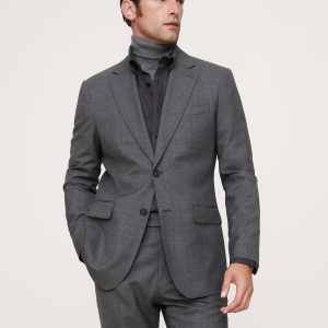 This sophisticated Italian wool suit jacket stands up to warm weather with a luxurious tropical wool fabric—a fabric beloved for its distinctive balance between an open weave and a tighter tension yarn, which gives it the ability to remain breathable while always looking pulled-together. Wrinkle-ResistantSlim Fit: Sits at the natural shoulder with an Italian-style soft shoulder expression. Fitted through the chest and waist.