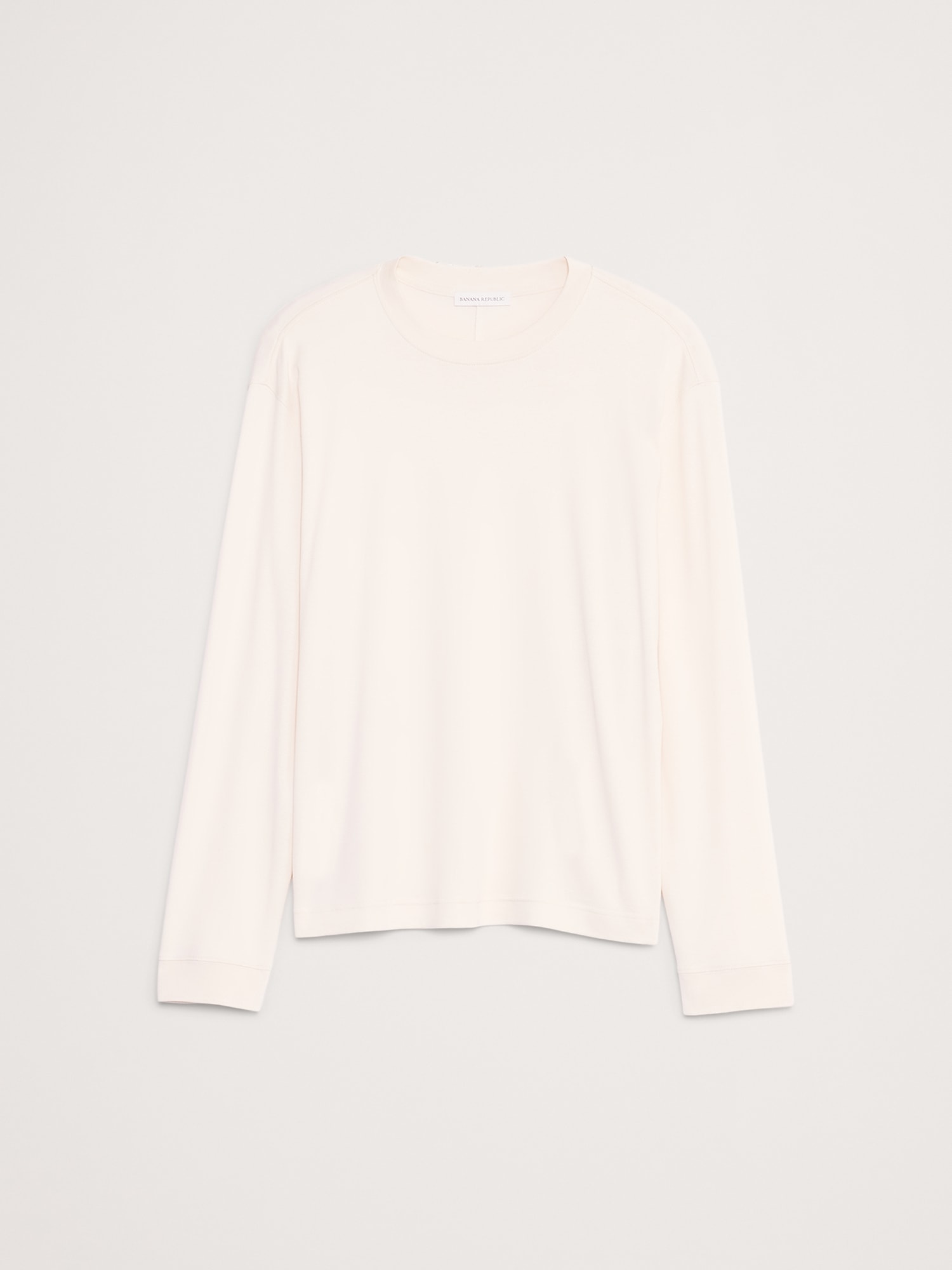 An elevated basic, this classic crew-neck tee is crafted from a silky, 100% cotton fabric that reads more dressed-up.