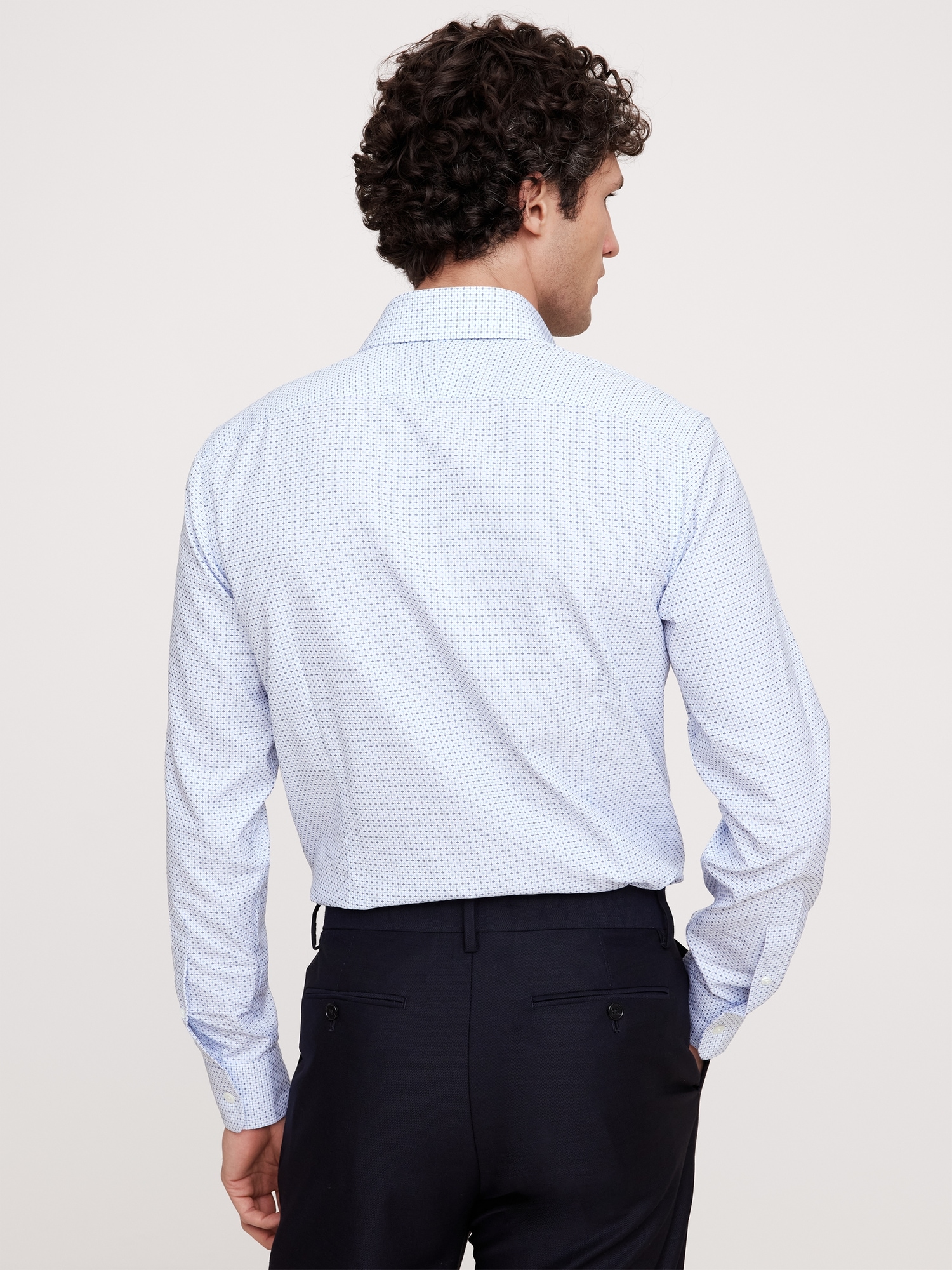 Designed for ease of wear and care, this sleek dress shirt employs a special cotton fabric with PUREPRESS™ cotton technology, a special process that smooths and protects the fabric, resulting in a finish.