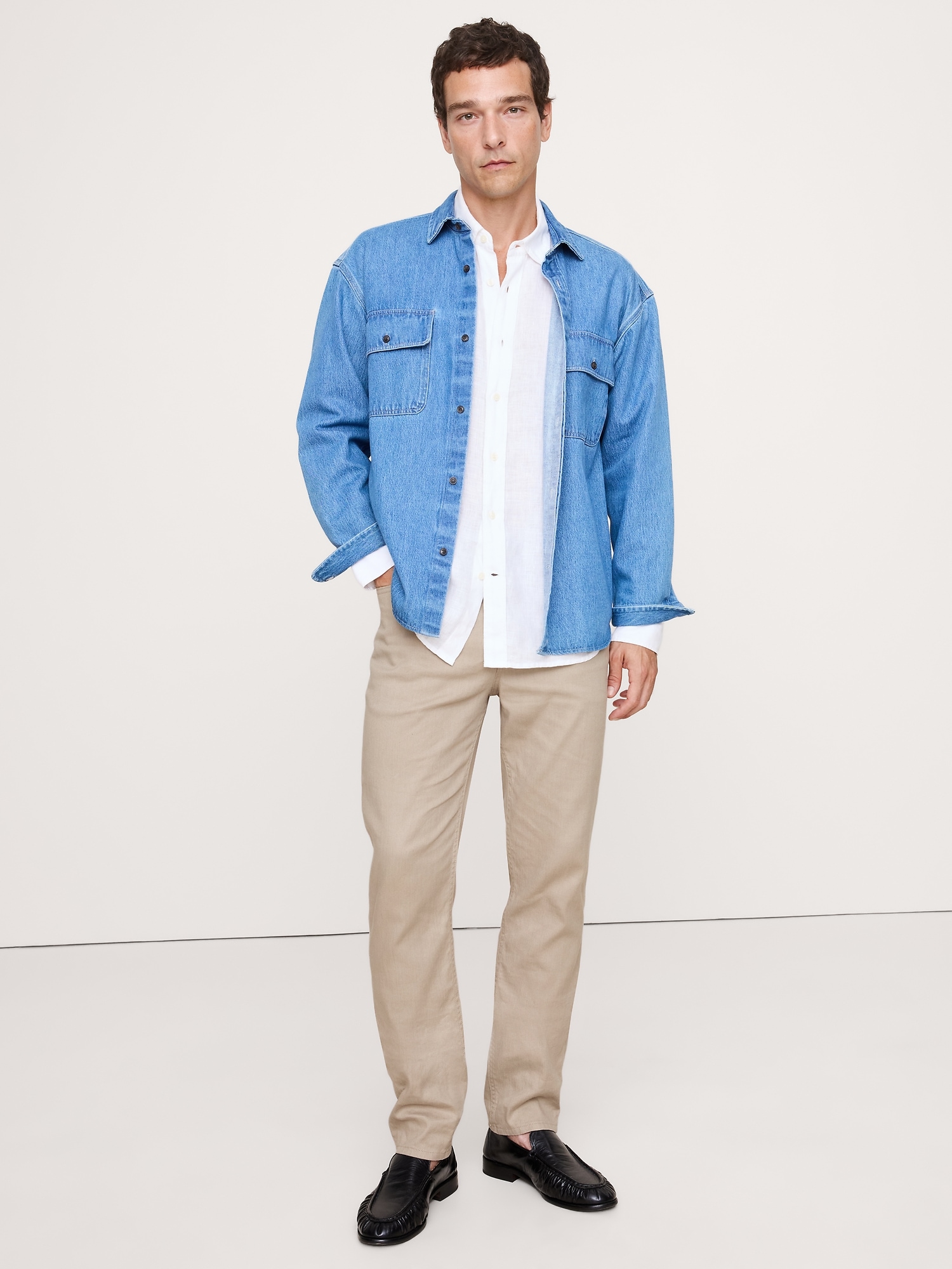 Our customer favorite Traveler returns, this time with an Italian fabric that mixes luxurious linen with breathable cotton and a touch of stretch for comfort.