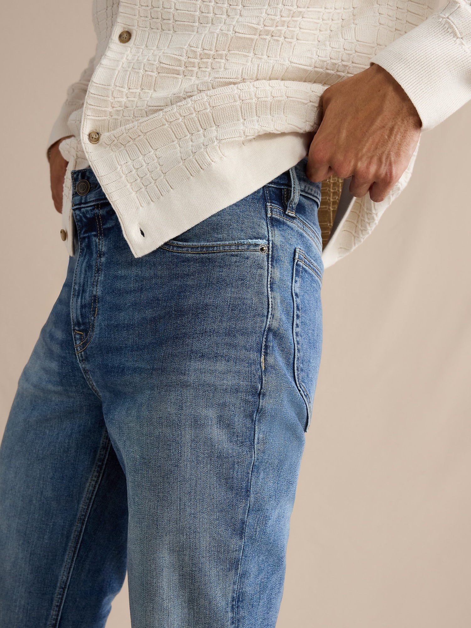 Our Luxe Traveler Jean has an extra-fine weave and is engineered with added stretch for comfort.