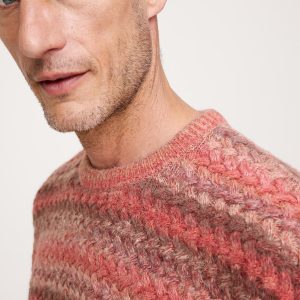 A fresh take on the classic cable-knit sweater, we reached for a beautiful yarn with space-dye coloring and a touch of alpaca for warmth and softness.
