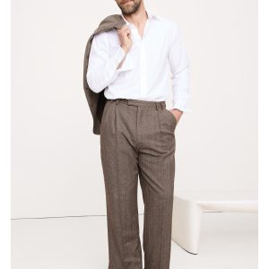 Designed with cooler climates in mind, this sleek suit pant is cut from an Italian herringbone fabric woven from 100% wool.