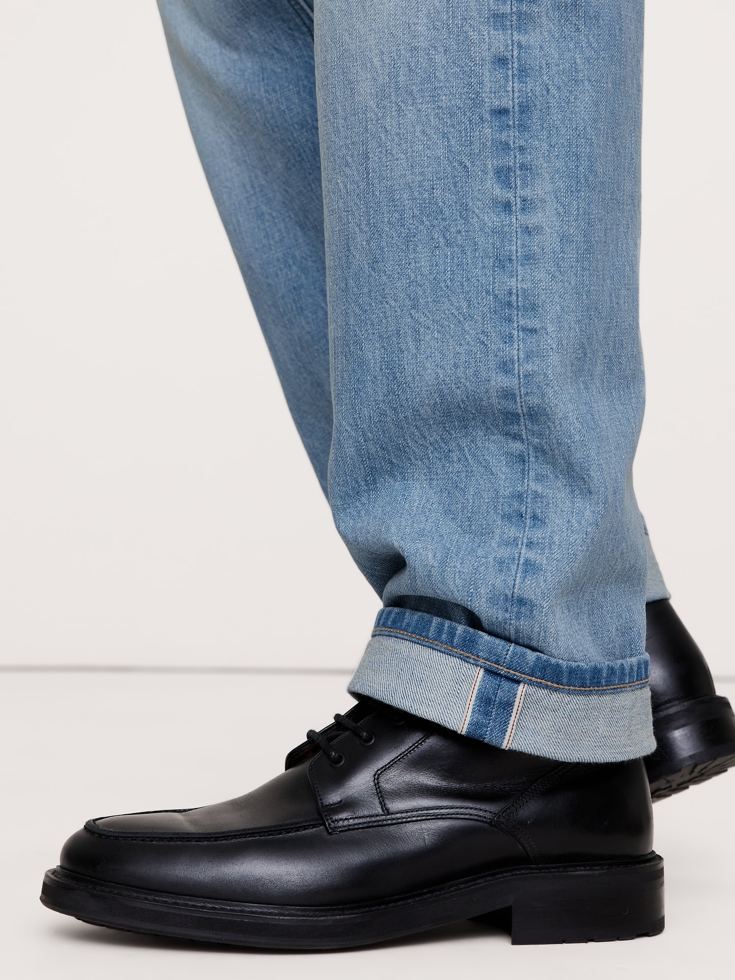 We love selvedge denim, so we set out to create the perfect pair of straight-leg jeans with a vintage-but-better look. Here, the denim is a 14oz-weight so it’s rugged, but light enough for every day wear and will only get better with time. Fit: Mid-rise (12.375\”). Slim through the thigh with a straight leg.