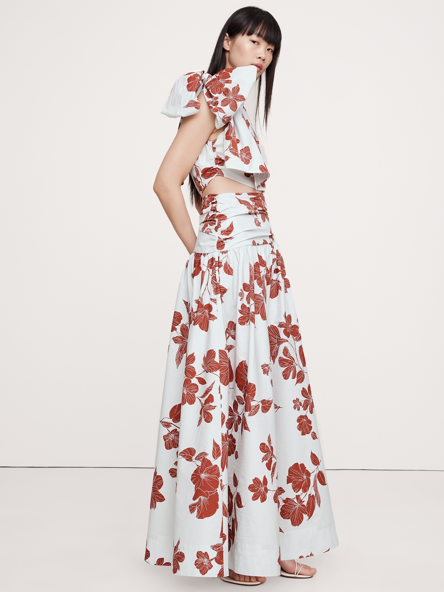 Stretch-Cotton Poplin One-Shoulder Drop-Waist Maxi Dress