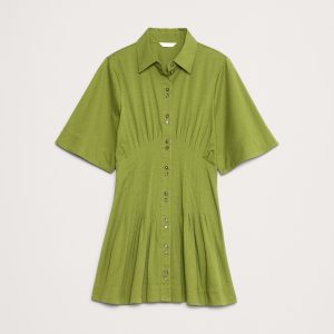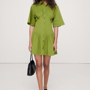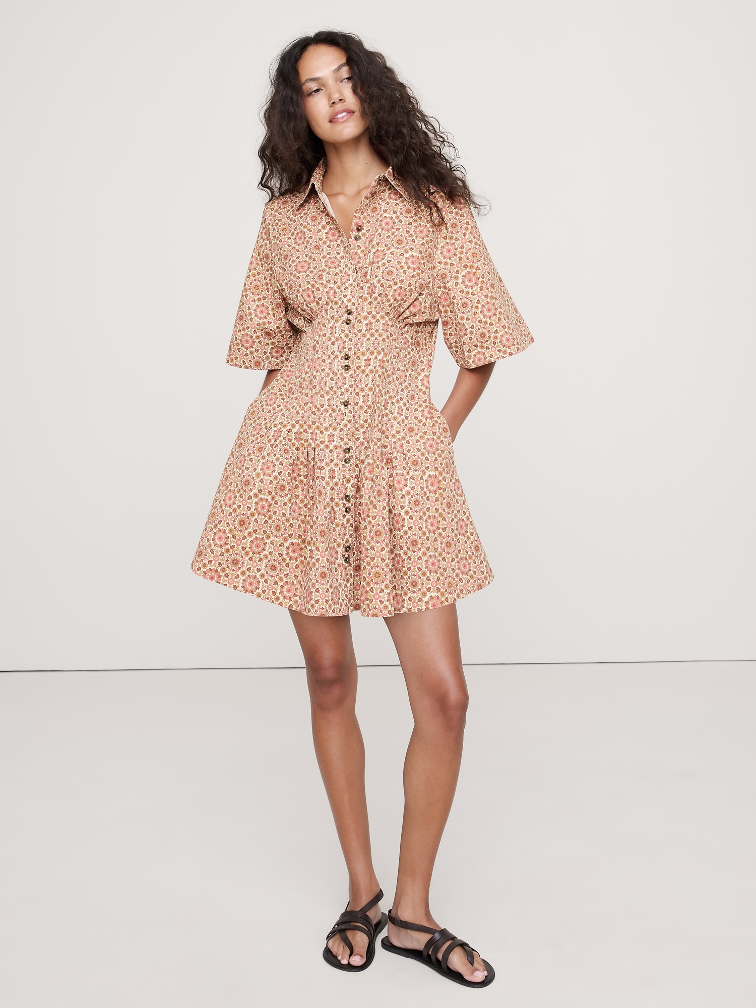 Deconstructed, reconstructed. This mini dress nods at the season’s drop-waist trend with corset-inspired pleats at the waist—in our 100% cotton poplin.