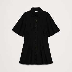 Deconstructed, reconstructed. This mini dress nods at the season’s drop-waist trend with corset-inspired pleats at the waist—in our 100% cotton poplin.